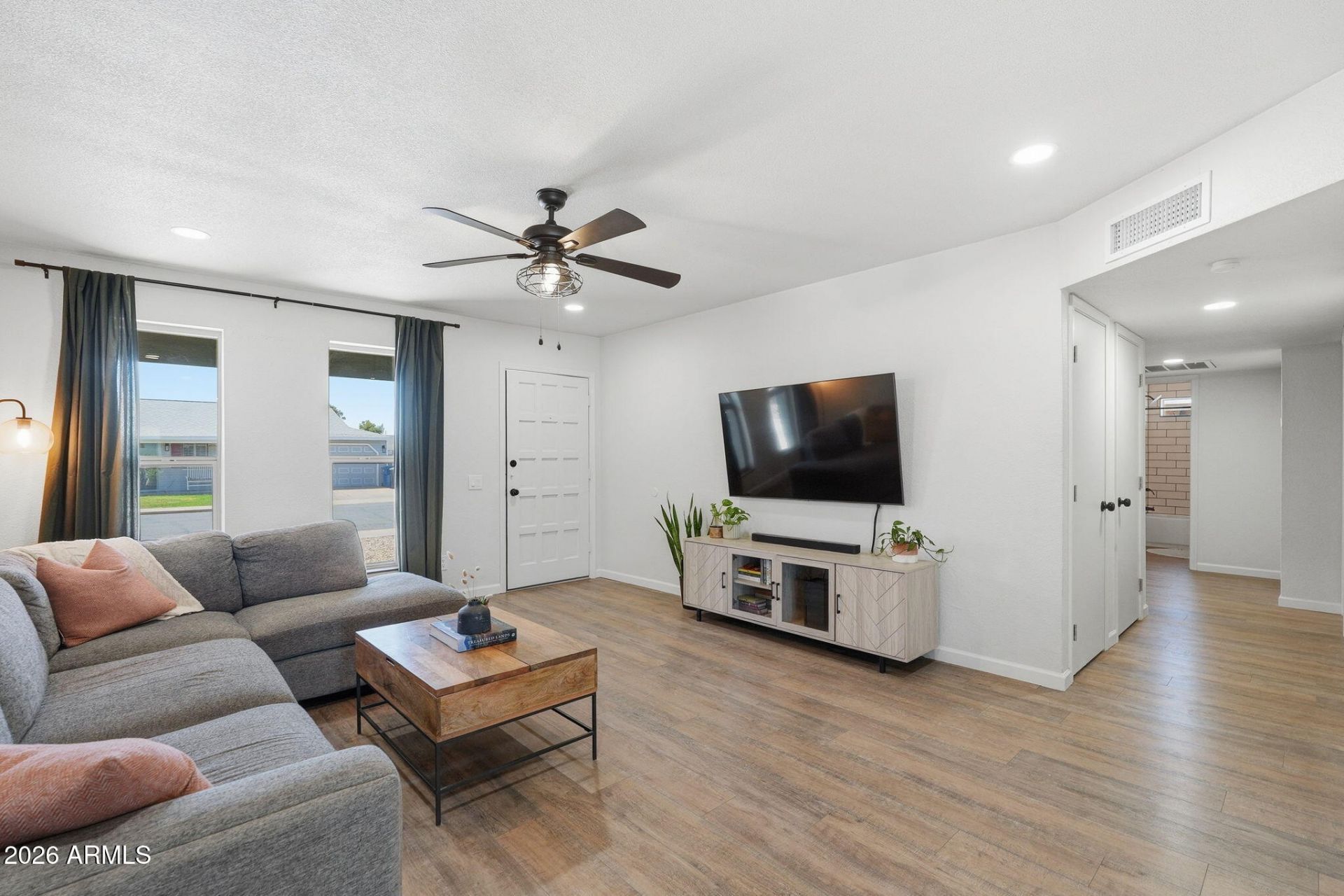 FULLY REMODELED 3 bed, 2 bath home with NO HOA. Bright, open layout with luxury laminate flooring, neutral finishes, and a cozy family room with fireplace. Updated kitchen features stainless steel appliances and a spacious island. Rare for Mesa, the primary suite offers a large walk-in closet and an expanded bathroom--designed for comfort and function. Dual pane windows and move-in ready throughout. Spacious backyard with room to customize. New HVAC in 2021 and new water heater in 2024!!