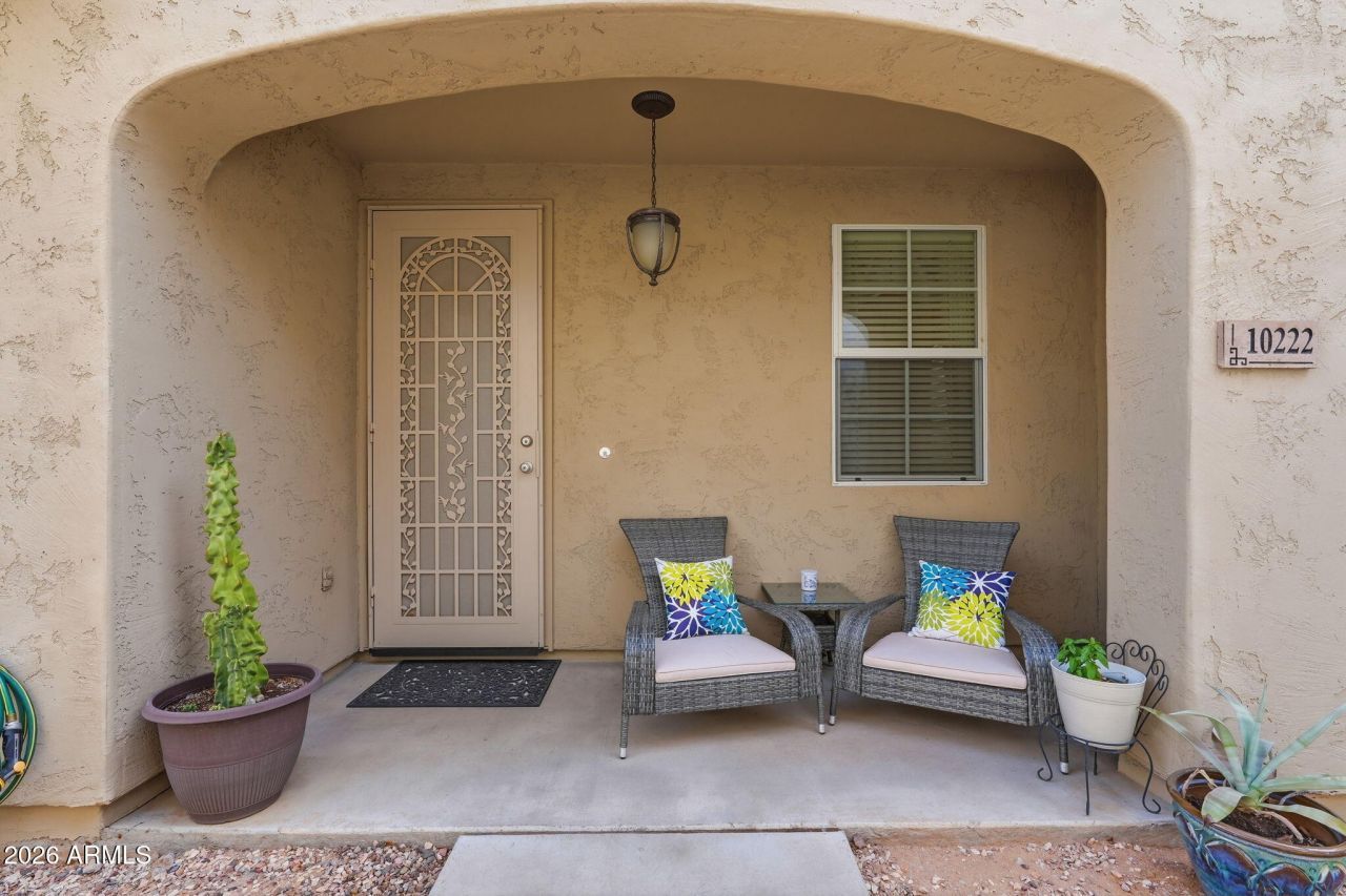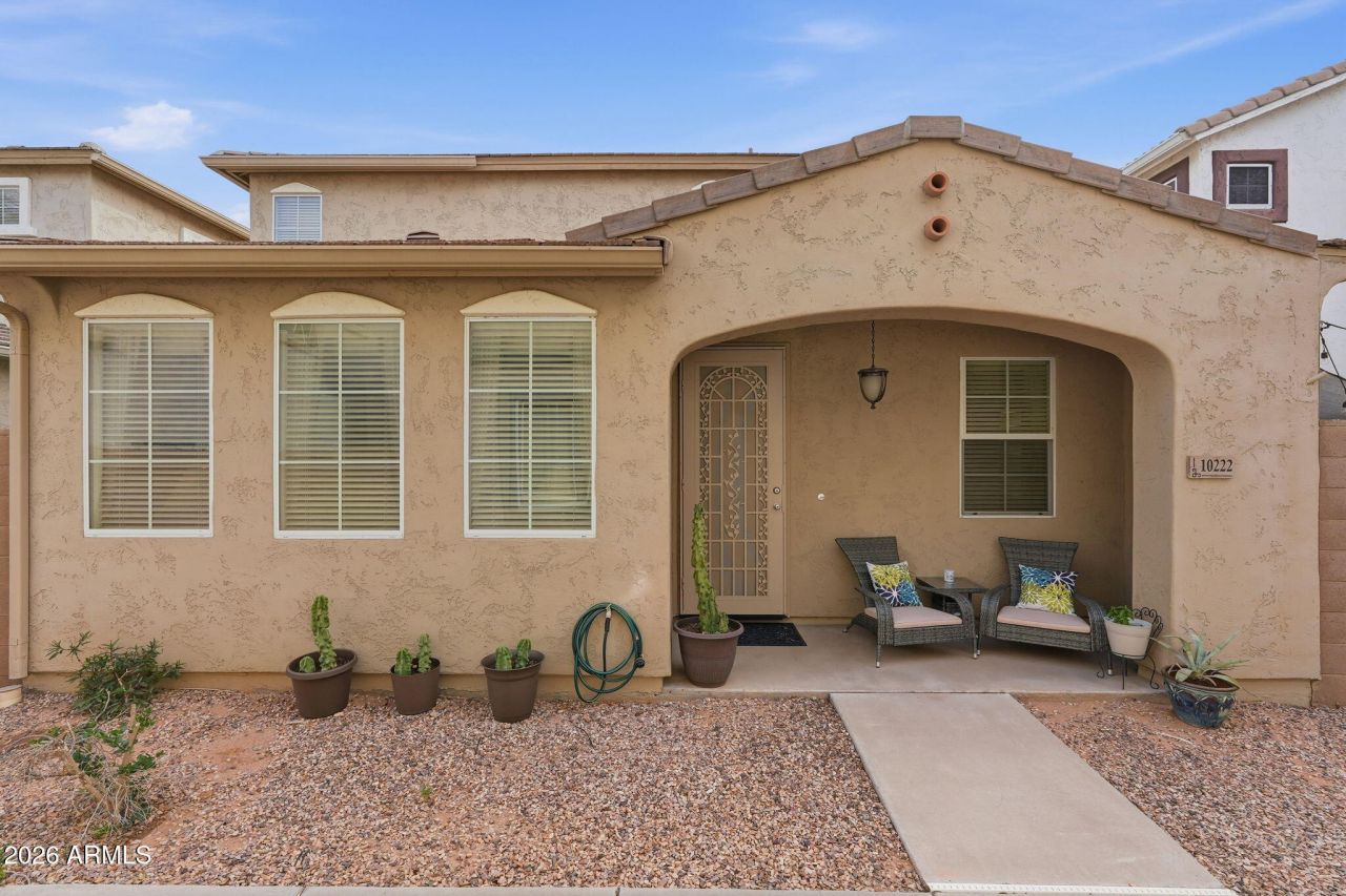 Affordable and absolutely adorable! This charming 2-bedroom, 2-bath home is located in the highly sought-after Crismon Creek Village community in Mesa. Close to hospitals, shopping, restaurants, and major highways, you can be anywhere in just minutes.The open-concept living and dining area offers a warm, inviting space with access to a cozy private patio -- perfect for relaxing. Main floor features rich luxury vinyl flooring, custom drapes, and blinds that add both style and comfort. The spacious kitchen is appointed with beautiful marble/dolomite countertops, ample cabinetry, a pantry, and a charming breakfast nook.Upstairs, youll find two generously sized primary suites, each with its own ensuite bath, plus a conveniently located laundry room. The 2-car garage offers direct entry into the kitchen for added ease.Enjoy the community parks and sparkling pool that make this neighborhood so desirable. Move-in ready and full of charm -- dont miss this opportunity!