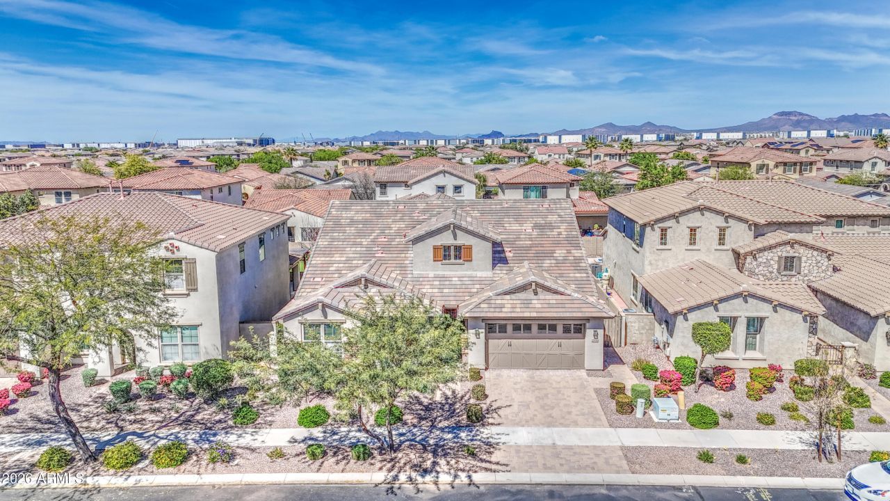 ✨ Highly Desired Woodside Empire Model with Full Pop-Top - Your Familys Ultimate Arizona Retreat Awaits! ✨Step into this stunning 6-bedroom, 3.5-bath home totaling 4,002 sq. ft. and immediately feel the spacious, welcoming vibe that makes everyday living feel extraordinary.The expansive open floor plan flows beautifully across approximately 2,900 sq. ft. downstairs, featuring four generously sized bedrooms--including a luxurious primary retreat thats perfect for unwinding in style. Entertain with ease in the gourmet eat-in kitchen complete with upgraded full-length upper and lower cabinets, premium countertops, and built-in appliances including a gas cooktop, convection oven, and microwave. A formal dining room adds elegance for holidays and special gatherings... Storage is abundant throughout, and the convenient downstairs laundry room is prepped for both gas and electric dryers. Custom tile flooring graces the entire first level (with fresh tile updates in the bedrooms in 2024).Head upstairs to an additional 1,100 sq. ft. of flexible living space, highlighted by a large loft wired for surround sound--ideal for movie nights, gaming, or a cozy family hangout. Youll also find a full bathroom and two oversized bedrooms, each with walk-in closets.The 3-car garage is a standout: epoxy-coated floors, built-in cabinets, a 220v outlet ready for your electric vehicle charger, plus plumbing for a garage sink and water softener. Practical meets impressive.Now, the backyard... your personal resort! Dive into the swim spa (recently serviced with a brand-new heater installed in January 2026), rinse off in the outdoor shower, or fire up the built-in natural gas BBQ island. Relax under over 650 sq. ft. of maintenance-free Alumawood shade covering the large paver patio--perfect for year-round outdoor living in sunny Arizona. Fresh exterior paint and interior touch-ups completed just in the last two months keep everything looking crisp and move-in ready.This exceptional home sits in the heart of the vibrant, master-planned community of Eastmark--known for its top-rated schools, abundant parks, community events, and family-friendly lifestyle.If youre looking for space, luxury, and resort-style living all in one incredible package, this is the one. Dont miss your chance to make this Woodside Empire model your forever home!
