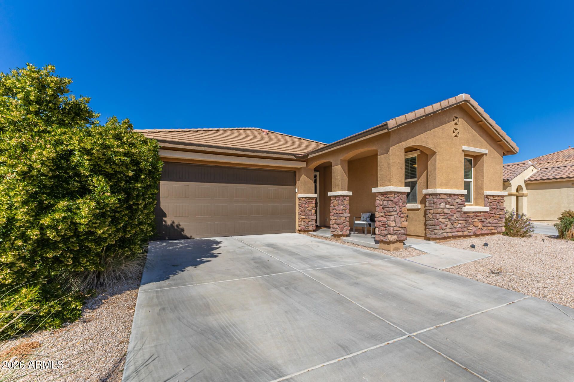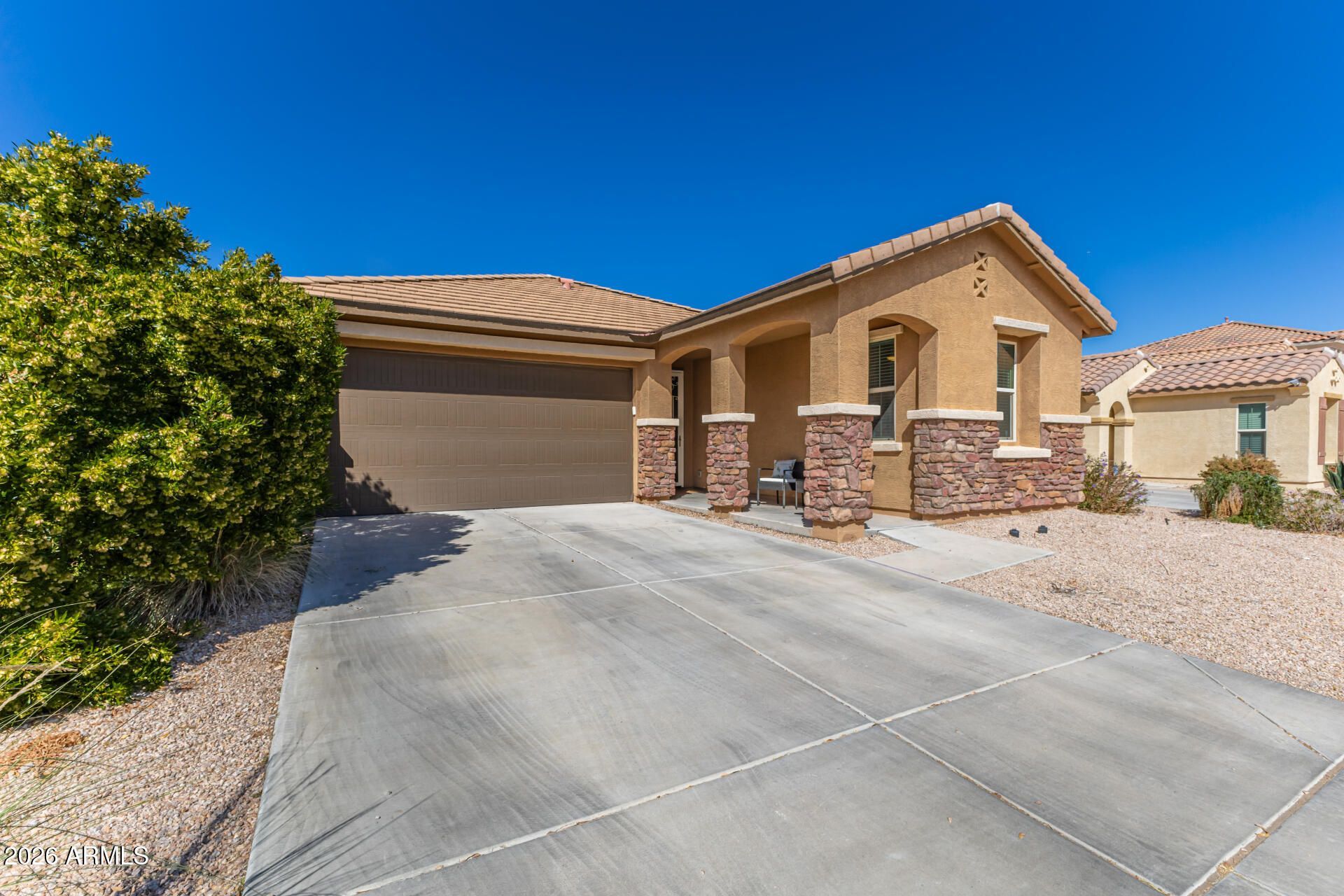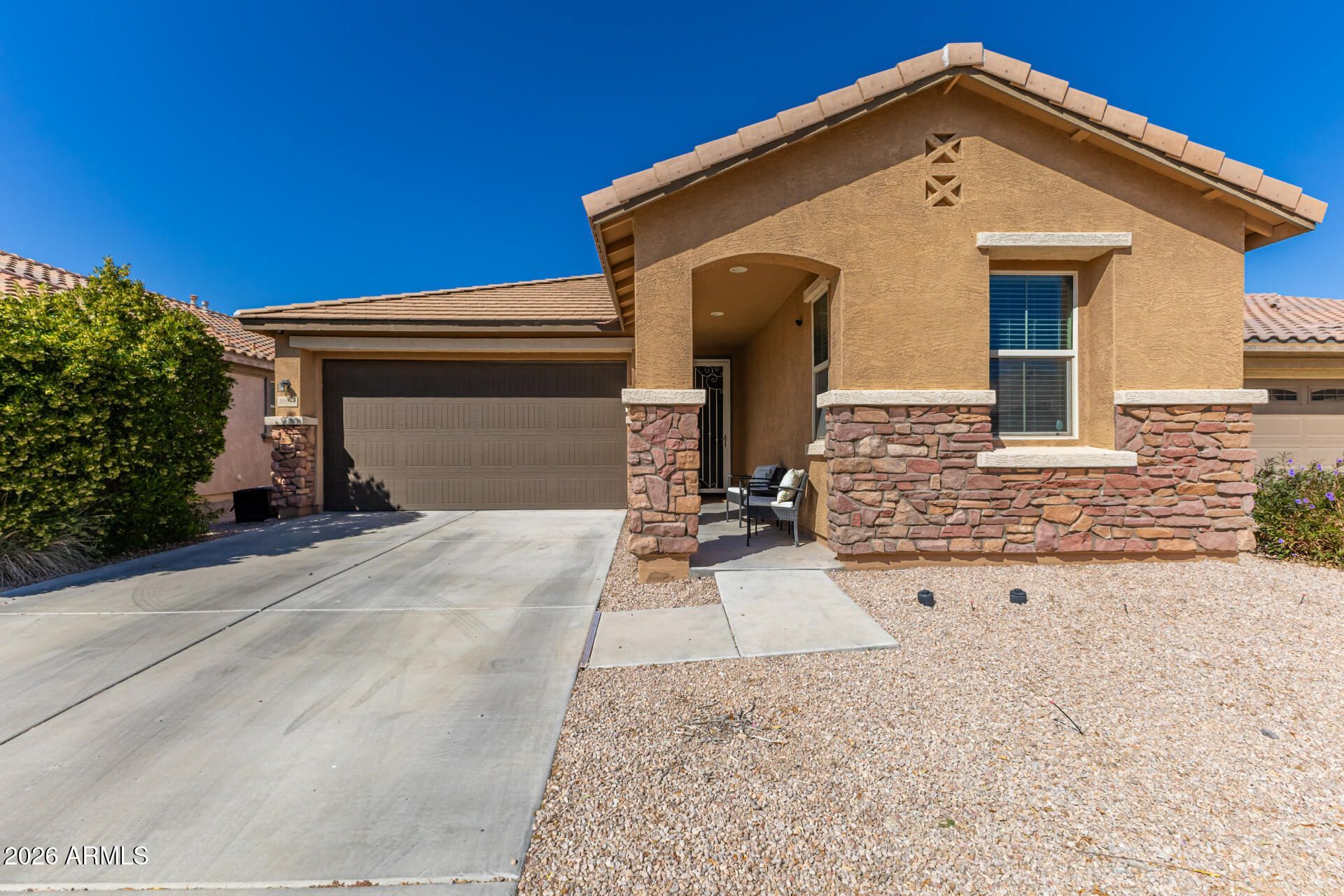 Move-in ready single-level newer home built in 2015 featuring a desirable 3-bedroom, 2-bath split floor plan and seamless indoor-outdoor living. Step inside to a bright, open-concept layout where the living area looks directly out to the backyards heated pool and in-ground spa, creating the perfect space for relaxing or entertaining. Enjoy Arizona evenings under the covered patio wired for TV, unwind on the pools lounge shelf, or soak in the spa under the stars.The kitchen is designed for gathering, offering a spacious granite island, white cabinetry, granite countertops, subway tile backsplash, and stainless steel appliances, including a gas range with a double oven. The north/south facing lot enhances energy efficiency and natural light. The primary suite features a tray ceiling with crown molding, private sliding door access to the backyard, a walk-in closet, and a spa-like bath with a large soaking tub, separate shower, and dual sinks. Throughout the home youll find 9 ceilings, neutral two-tone paint, ceiling fans, crown molding in the living areas and primary bedroom, and tile flooring in all main living spaces. Additional upgrades include a reverse osmosis drinking water system and owned water softener. Located in a convenient Mesa location with easy freeway access, nearby restaurants, shopping, and golf, it is just a short drive to boating and recreation at Saguaro Lake and Canyon Lake.