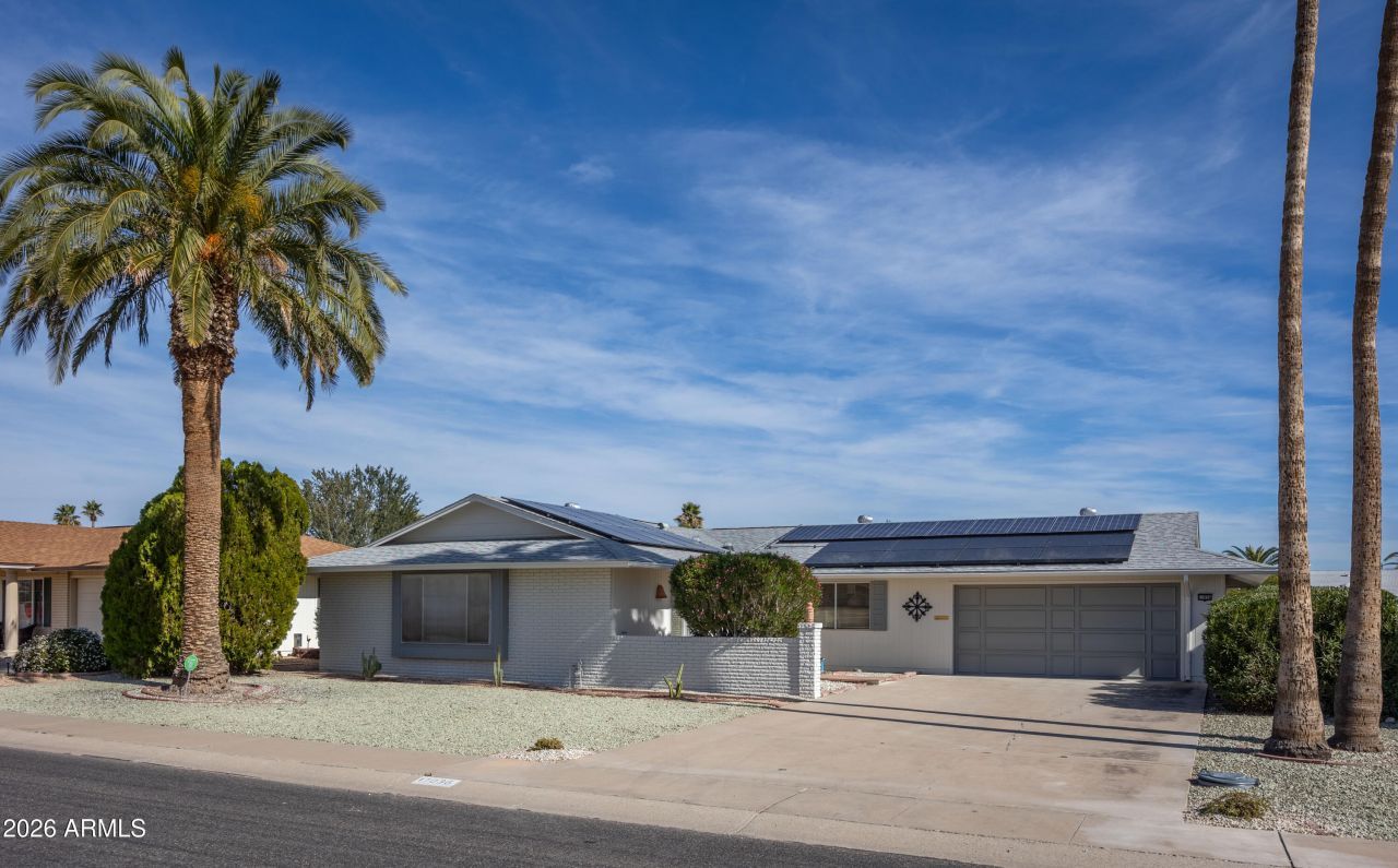 Welcome to this beautiful 2-bedroom, 2-bath home with a dedicated office/den room, offering a spacious and functional layout ideal for both comfort and entertaining. The open living areas create an inviting atmosphere, while fresh interior and exterior paint and brand-new carpeting give the home a modern, move-in-ready feel.Major updates provide peace of mind, including a newer roof (2021), HVAC system (2018) with furnace coil replaced in December 2025, solar panels installed in 2021, and a water heater from 2017. The low-maintenance yard allows you to spend more time enjoying the Sun City community lifestyle!