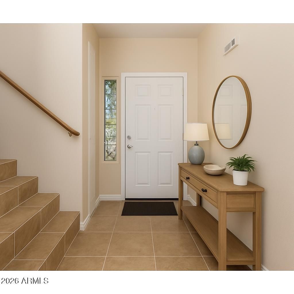 Note: home was off the market for 4 months, The dream home nestled on a coveted corner lot! This inviting residence boasts a spacious 2-car garage and features 3 bedrooms and 2.5 bathrooms, perfect for comfortable living. Step inside to find fresh, new paint throughout, complemented by stylish tile flooring. The expansive family living room is ideal for gatherings, while a generous loft adds extra versatility. The TOTAL REMODELED kitchen is a chefs delight, showcasing NEW stainless steel appliances, stunning granite countertops, a chic tile backsplash, ample white cabinetry, walk-in pantry, and a functional island for casual dining. Outside, enjoy the benefits of NEW exterior paint and a beautifully landscaped backyard with turf, offering low maintenance and a NEW TRANE A/C 5 TONS UNIT mountain views. Retreat to the main bedroom, complete with a private balcony thats perfect for savoring breathtaking sunsets. The additional bedrooms feature NEW wood tile flooring and spacious layouts with well-sized closets. The upstairs living quarters have NEW flooring and a beautifully remodeled bathroom. *Home was temporary off the market for renovations.