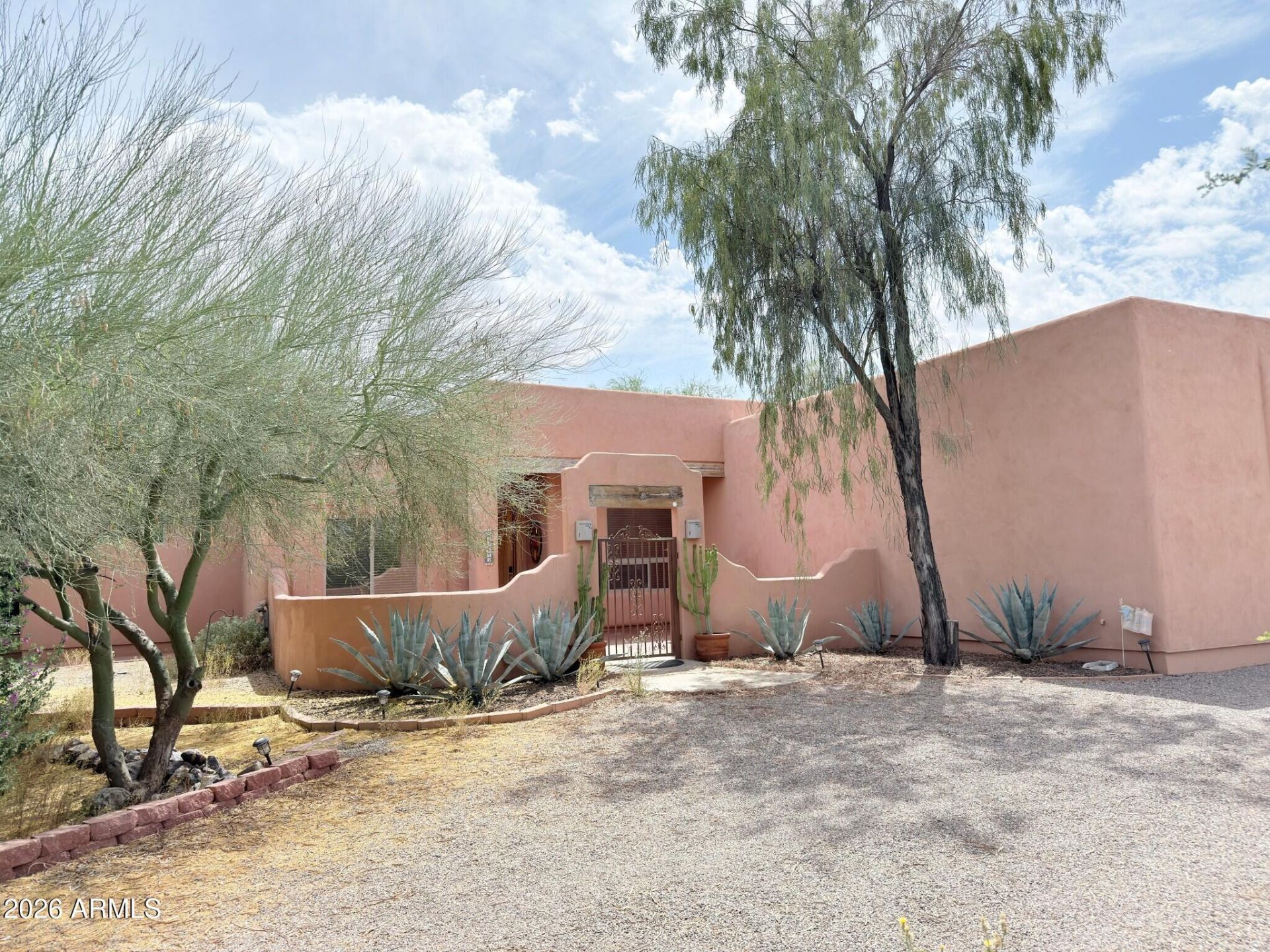 Charming territorial home that brings Sedona to the valley! Brighten your day with the colors of Sedona on the inside, and enjoy the specially curated patios and relaxation areas on the outside. Inside the spacious, open floorplan, you find a great beehive fireplace, earthy tile throughout the main areas, and a wonderfully updated kitchen with a large center island with lots of built in storage and a wine rack. Stainless steel appliances & granite counters make it shine. Outside are several patios and nooks to relax in... the private nook by the wash tucked in with the trees, the front courtyard, or the main back patio with pool table and spa. There is an out building with electric & water, a garden shed and water outlets at each landscaped island. CITY WATER. 10-15 minute drive to TMSC.