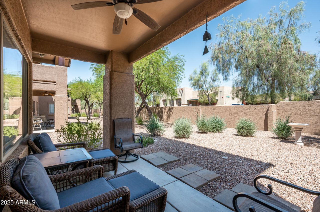 This single-level first-floor end unit offers an exceptional Scottsdale opportunity in a gated community. Set in a peaceful location at the back of the complex, this home features a private single-car garage, a covered patio, and fresh interior paint. The kitchen showcases maple cabinets and a breakfast bar flowing into the living room with a gas fireplace and media niche. The spacious Primary suite includes a walk-in closet, dual sinks, and a large shower. Mirage Crossing offers a saltwater heated pool and spa, fitness center, ramadas, BBQs, a rec center, and beautifully maintained grounds--all minutes from the Mayo Clinic, shopping, dining, and the 101.