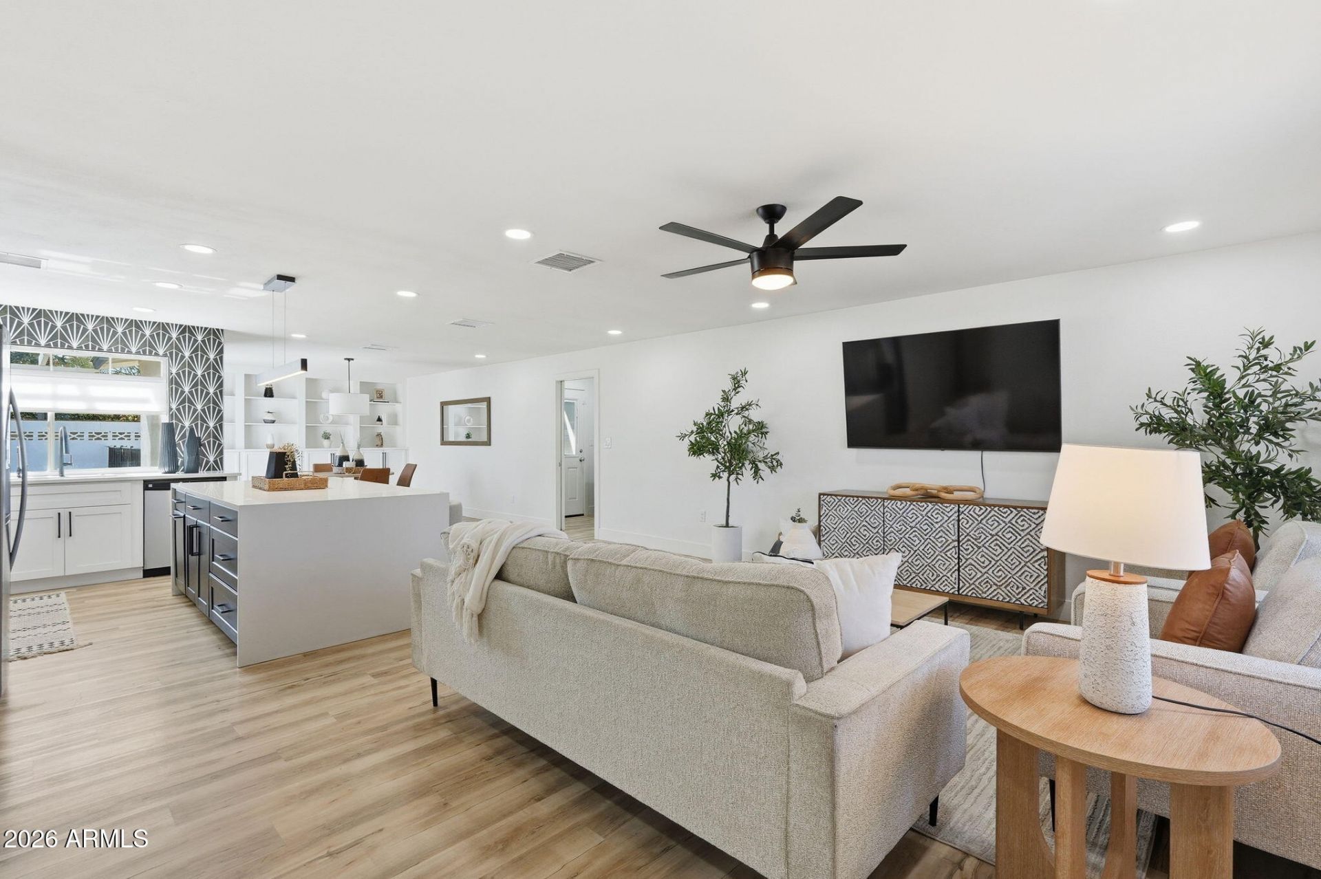 Remodeled home in a great location near Shea and the 51, conveniently close to freeway access. Walk or bike to local restaurants, shopping, and hiking trails. Natural desert landscaping and midcentury-style architecture give this home great curb appeal. Large great room with an open floor plan and kitchen island. Three bedrooms and two bathrooms have been tastefully updated. Glass sliding doors lead to a large patio, real grass backyard, and private diving pool. Mature palms and a saguaro complete the backyard. Owned solar panels. Desirable area close to the new Paradise Valley Mall and Dreamy Draw hiking trails.
