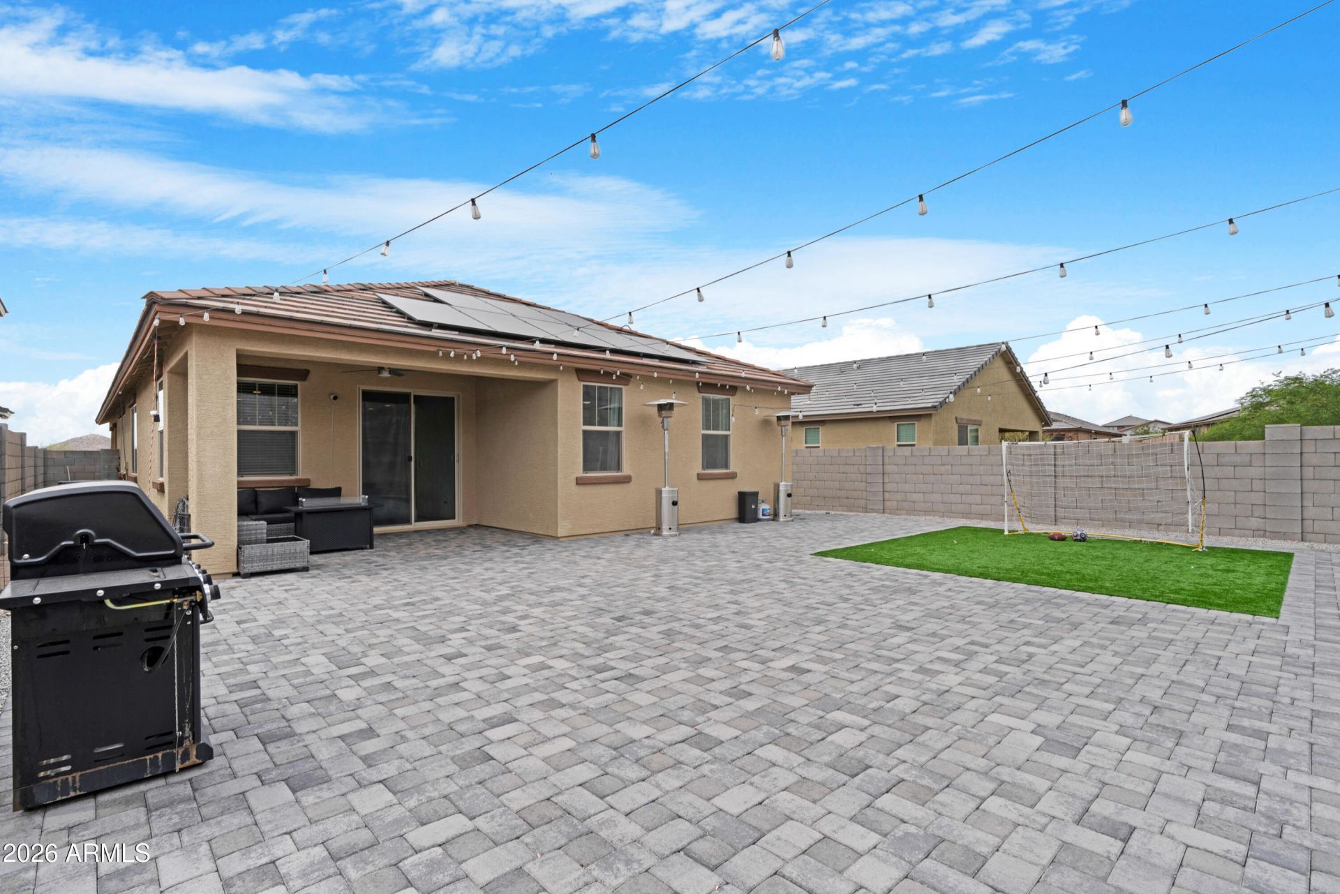 Live the lifestyle others vacation for...every single day. Built in 2023, this beautifully designed 3 bedroom + study home offers the perfect blend of modern comfort, efficiency, and elevated living.Step inside to an open, light-filled floor plan with tile throughout all main living areas, creating a seamless and low-maintenance space ideal for both everyday living and entertaining. At the heart of the home, the chefs kitchen delivers, featuring generous counter space, large island, quartz countertops, gas cooktop, stainless steel appliances and room to gather, cook, and connect. The versatile study provides the flexibility todays buyers need; Perfect for a home office, gym, or creative space. Each bedroom is thoughtfully positioned for privacy and comfort.Enjoy Arizona living at its best in the low-maintenance backyard, complete with pavers and turf--designed for relaxation without the upkeep. Added solar panels help reduce monthly energy costs, giving you long-term savings and efficiency.Located in a community known for its resort-style amenities, Mountain Views, and a multitude of outdoor activities, this home offers more than just a place to live--its a lifestyle upgrade. From modern finishes to smart features and thoughtful design, this is the one that checks every box.