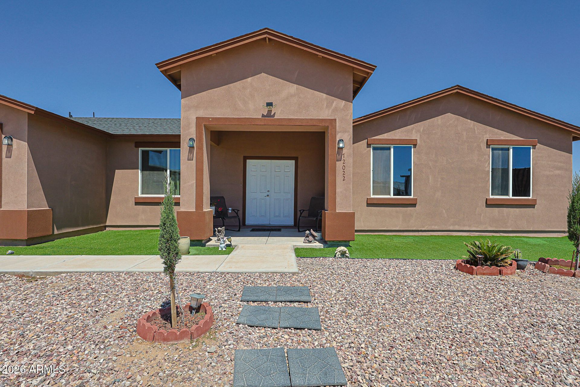 Check out this newer 2022 custom new build property on over an acre of land--bring your horses, your toys, and enjoy the space! This home is perfectly nestled on a premium lot with no side neighbors and no direct back neighbors, offering privacy and wide-open desert views. The AC unit is only 4 years old, giving you peace of mind. Featuring modern finishes, an open-concept layout, spacious living areas, and plenty of natural light throughout. The property offers endless potential with room to expand, add a shop, or create your dream backyard oasis. A rare find with both comfort and freedom, dont miss out on this one!