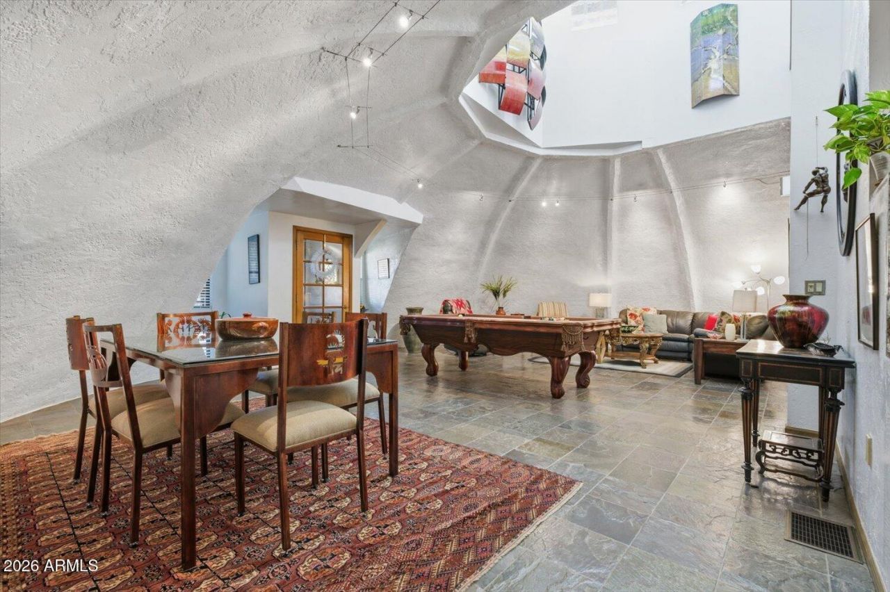 One of a kind exceptional, MUST SEE earth-sheltered serene sanctuary, nestled in the scenic mountain-graced Ahwatukee Equestrian Estates! Restore your soul & be inspired as you feel the soothing energy inside of this earth-bermed beauty with elegantly curved concrete walls that create a tranquil haven. This energy efficient dome home keeps you safe, secure, comfortable & feeling calm while lowering your utility bills. Lovely natural light flows through the living spaces from the Cupola above.. Several updates in the home, including the kitchen & primary bath. Delightful indoor/outdoor living with inviting garden patios & spacious backyard with mountain views. Horses allowed. Community bridal path & horse arena. Live happily with the desirable Ahwatukee amenities & lifestyle This earth sheltered dome construction home is uniquely enticing! Good energy here! Serene sanctuary! Valuable, higher cost earth sheltered design compared to conventional construction. Lower cost utility bills. Spacious .59 acre give you room to play and add things that you want to add for your lifestyle. Corner lot and wrap-around courtyards provides privacy and wonderful outdoor spaces.Owners description of dome construction 12054 S. Tonalea Dr Phoenix, AZ 85044DOME OUTSIDE WALL CONSTRUCTION Curved I-Beams are bolted to the foundation and cupola ring Burlap/wire mesh is attached to the curved I-Beams 3 miles of rebar are attached to the outside curved beams/ burlap wire mesh on 1 foot centers Gunite/Shotcrete is applied to the outside of the dome. 4000 psi. 4-6 inches thick After concrete cures, waterproofing is applied to all exposed surfacesAhwatukee has amenities galore! Golf courses, parks, hiking and outdoor activities, good schools, plentiful mountain vistas, excellent dining options, entertainment, resort access, nearby Community Center and Rec. Center options , community activities, smaller town feel with everything that you need to live happily! Easy access to freeway connections.