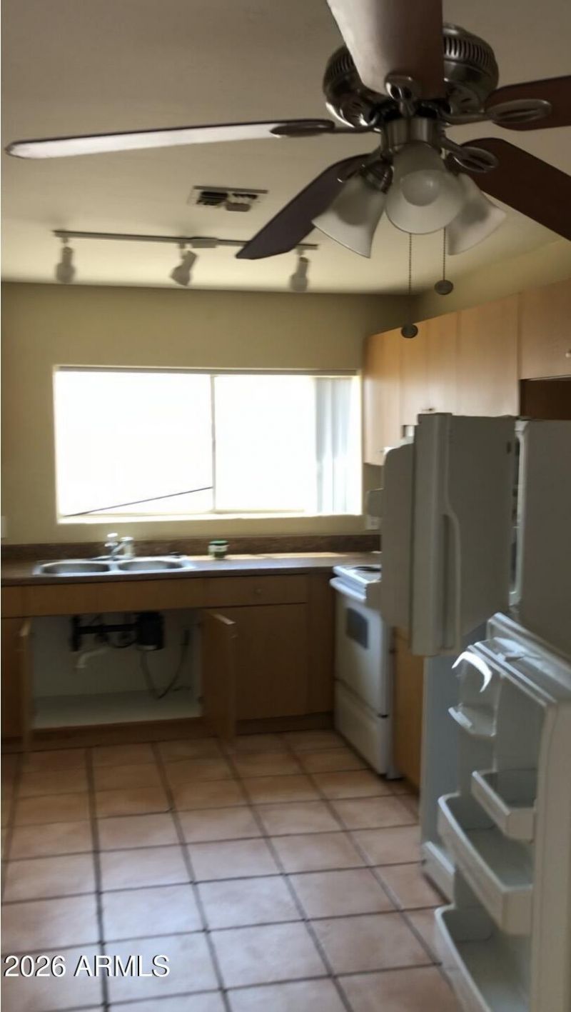 Fantastic masonry (block) duplex built in 2003 offering strong income potential & flexible living options. Each spacious unit features approximately 1,120 sq ft w/ 3 beds & 2 full baths. Both units showcase durable tile flooring throughout, ceiling fans in every room, and bright, open great rooms designed for comfortable living. Functional L-shaped kitchens include refrigerator, stove/oven, and garbage disposal, while all-electric systems help simplify maintenance. Major updates include brand new 2025 electric A/C and heating systems for both units, plus one new water heater. Large front patio along with private side and backyard spaces. Conveniently located near schools, shops and hiking trails. Currently tenant occupied, units leased at $1187 and $1090. Please do not disturb tenants. Access will be arranged upon accepted contract. Ideal for investors or owner-occupants seeking immediate rental income and long-term value!