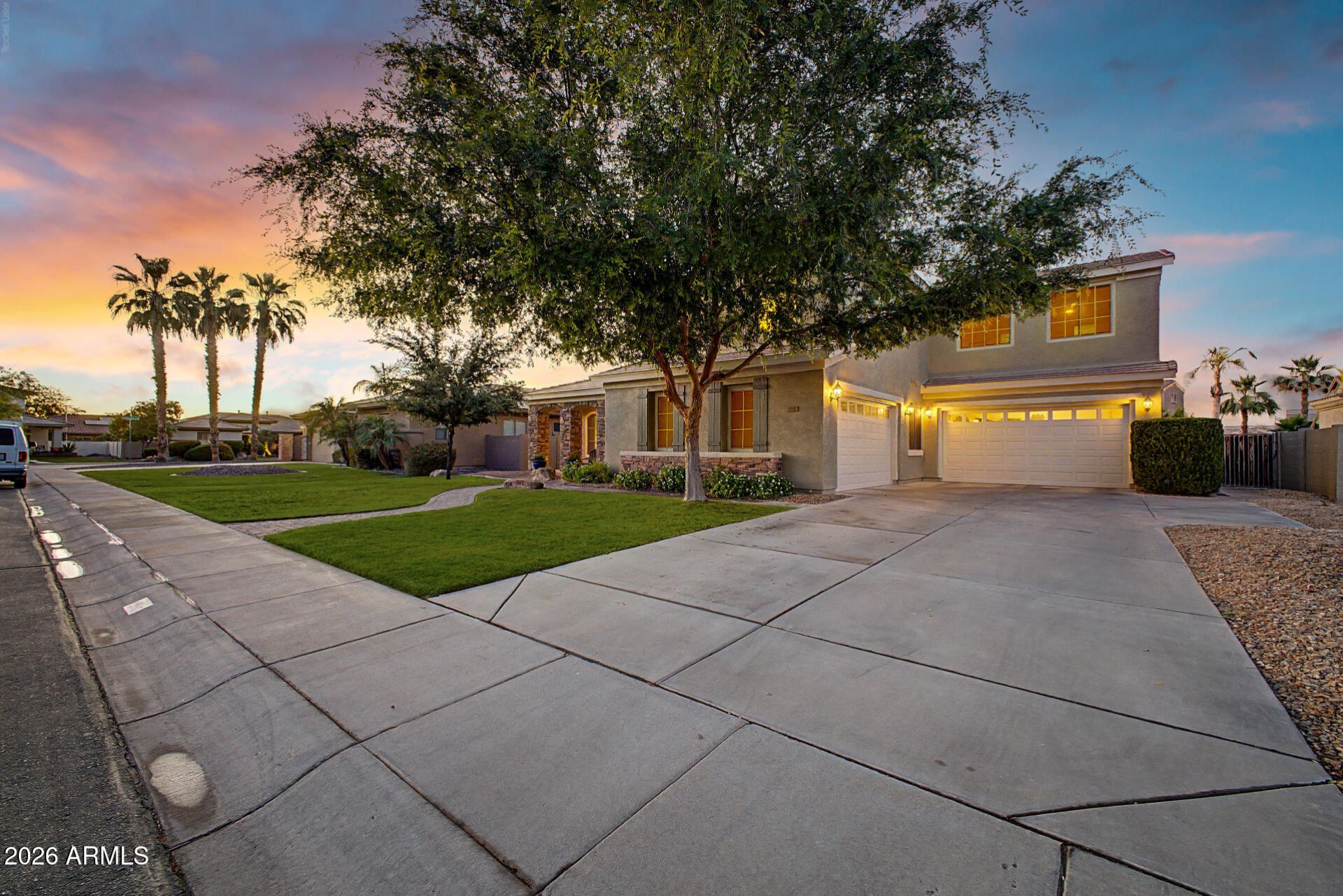 Gorgeous Semi-Custom Luxury Tract home in one of Gilberts most popular neighborhoods situated on over ¼ acre lot! This 6 bed home with a massive loft is located in the #1 School District in AZ, Chandler Unified. Easy & quick access to 202 freeway & close to San Tan Mall, Gilbert Regional Park & San Tan Trailheads! GOURMET kitchen has gas cook top, wall oven, butlers & walk in pantry, upgraded raised panel staggered cabinets w/ crown, granite countertops, stainless steel appliances, stone backsplash, pendant lights & large island/breakfast bar! Home has 10 foot ceilings, NEW ROOF & ACs 2021 & new interior paint. DOWNSTAIRS primary suite has custom closet/shelves. Guest suite also downstairs! Incredible yard includes a beautiful pool, outdoor kitchen, citrus trees on a N/S 11,645 SF lot!