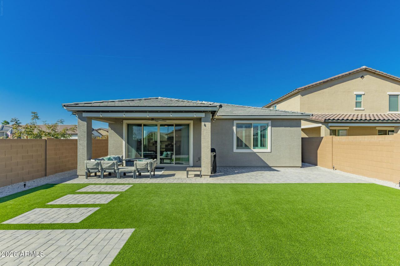 Welcome to this beautifully designed home in a gated, private community in Litchfield Park; thoughtfully upgraded for both comfort and everyday living. From the moment you walk in, the layout makes sense...an open, airy flow with natural light pouring in through additional windows and a spacious great room that connects seamlessly to the kitchen and dining area. The kitchen is the heart of the home, featuring quartz countertops, 42 cabinetry, stainless steel appliances, a walk-in pantry, and a large island thats perfect for gathering. The split floor plan offers privacy where you want it most, with a generous primary suite tucked away in the back, complete with a walk-in closet and a private bath. Three additional bedrooms give you flexibility for guests, a home office, or whatever life looks like in this season. Step outside and youll find a fully landscaped backyard designed for easy Arizona living, complete with a misting system and a covered patio--perfect for warm afternoons and relaxed evenings at home. This home includes stone tile flooring in select areas, ceiling fan prewiring, and energy-efficient features, such as a Polywood shutter insulation system designed to help keep the home comfortable year-round.