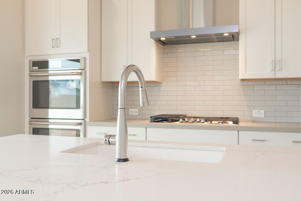Stunning two-story home featuring 5 bedrooms, 3.5 baths, and a 3-bay tandem garage. The gourmet kitchen shines with Diamond Collection Bryant hardwood cabinets in Steam, quartz countertops, stainless appliances, gas cooktop, double oven, microwave, and dishwasher. Enjoy seamless indoor-outdoor living with a 12 multi-panel sliding glass door opening to a covered patio. Ceramic wood-look plank tile flows throughout main areas. The primary suite offers a frameless walk-in shower. Additional highlights include a laundry sink with cabinets and paver driveway.