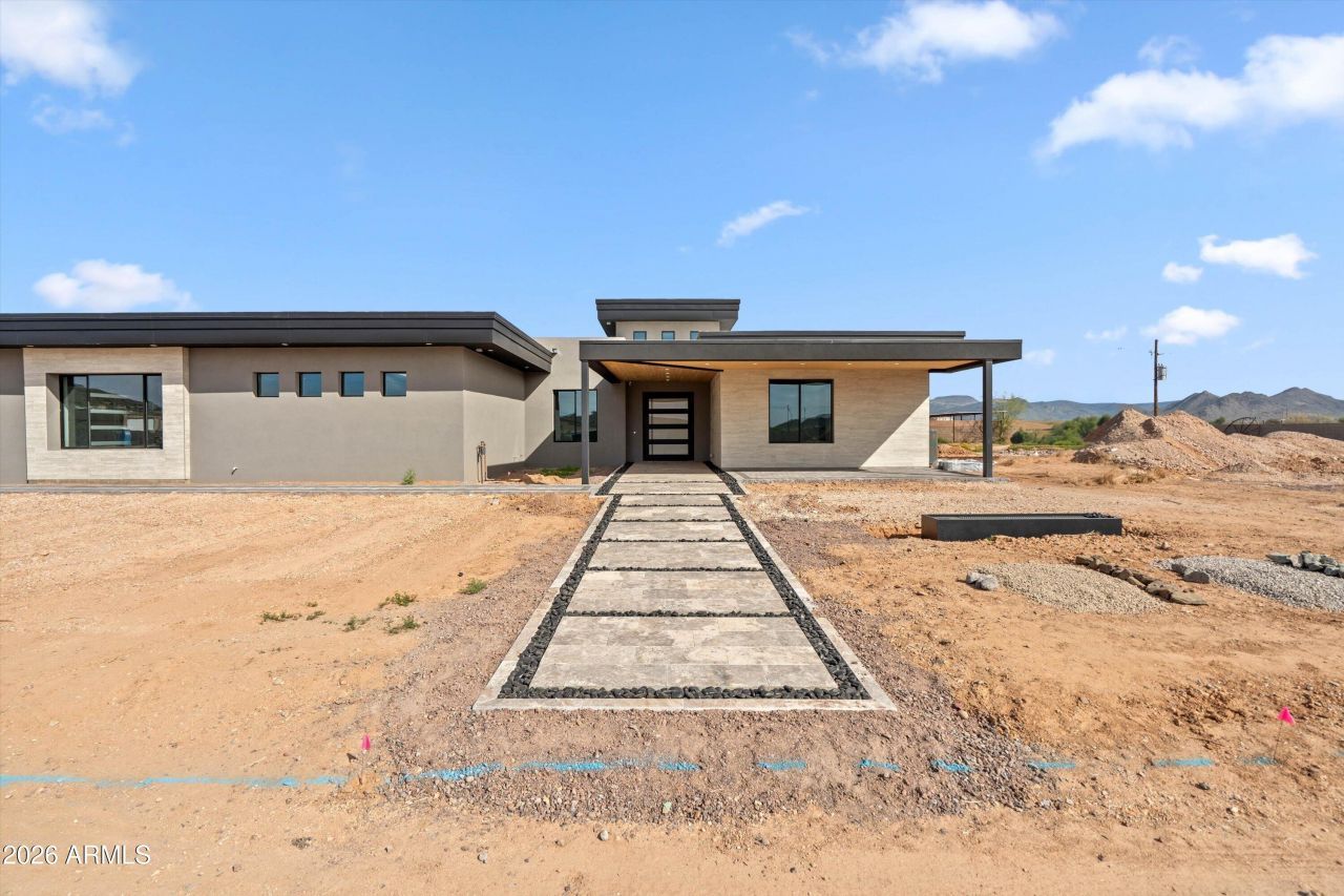 Built with advanced ICF (Insulated Concrete Form) construction, this custom new build features steel-reinforced concrete walls offering exceptional energy efficiency, durability, and sound insulation--an elevated building method rarely found in traditional homes. Located on over an acre in sought-after Desert Hills with no HOA, this thoughtfully designed single-level home offers an open floor plan with soaring ceilings, expansive windows, and high-end custom finishes. The gourmet kitchen will feature premium appliances, custom cabinetry, designer lighting, and a large island ideal for entertaining. The split primary suite includes a spa-inspired bath with a freestanding tub, oversized shower, and a walk-in closet with direct access to the laundry room with dual washers and dryers. Additional features include a private office, flex/den space, media room with wet bar, mudroom, and 3-car garage. Custom pool and landscaping currently under construction.