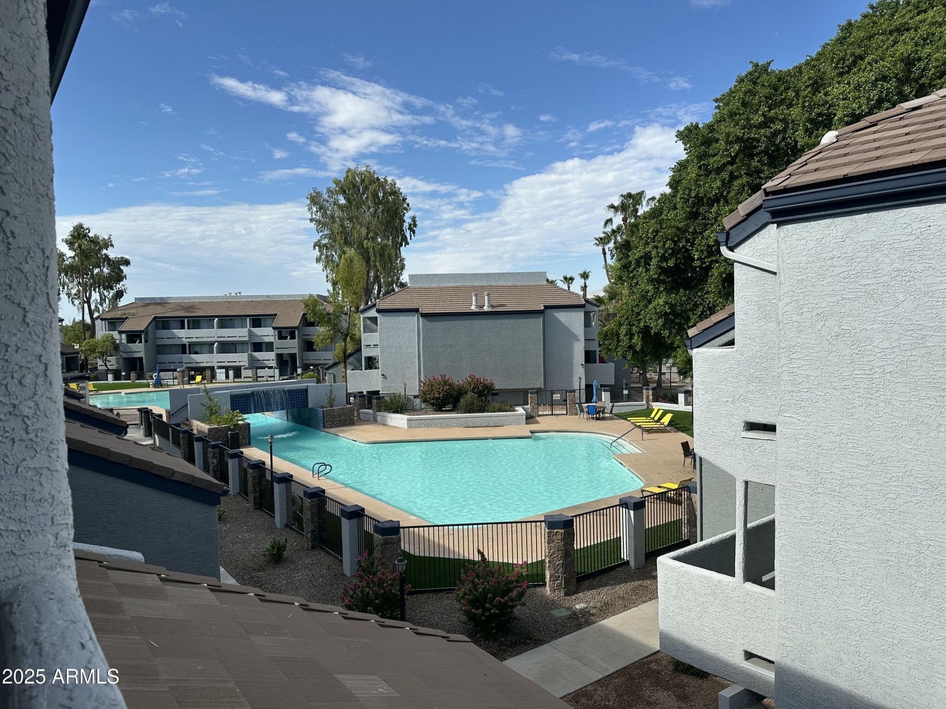 This Dobson Bay Club home comes with some of the best perks youll find. HOA covers roof replacement, blanket insurance, water, sewer, trash, and pest control, plus pets are welcome! The community offers a HUGE resurfaced resort-style pool and spa, BBQ areas, and mature trees. As part of Dobson Ranch, youll also enjoy three recreation centers, multiple pools, a splash pad, seven lakes, tennis, racquetball, pickleball, volleyball, and basketball courts, along with playgrounds and scenic walking paths. Inside, the home is beautifully remodeled with an open main level designed for both comfort and style. The spacious living room features a cozy fireplace, custom storage with a sliding barn door, and a welcoming entry with a coat closet. The kitchen stands out with white cabinetry, custom countertops, a large island, stainless steel appliances, and a subway tile backsplash. It flows into the oversized dining area with access to one of three balconies overlooking the sparkling pool and waterfall. Also on this level: a walk-in storage area under the staircase, a full-size laundry room, and a stylishly updated half bath.Upstairs, two primary suites each include a private balcony with pool views and updated en suites with new vanities, countertops, tiled showers, and modern finishes. A third bedroom adds flexibility for guests, family, or a home office.Minutes from ASU, MCC, Tempe, Scottsdale, Sky Harbor, and major freeways, this move-in-ready home offers not only modern upgrades but also a community lifestyle thats hard to beat.