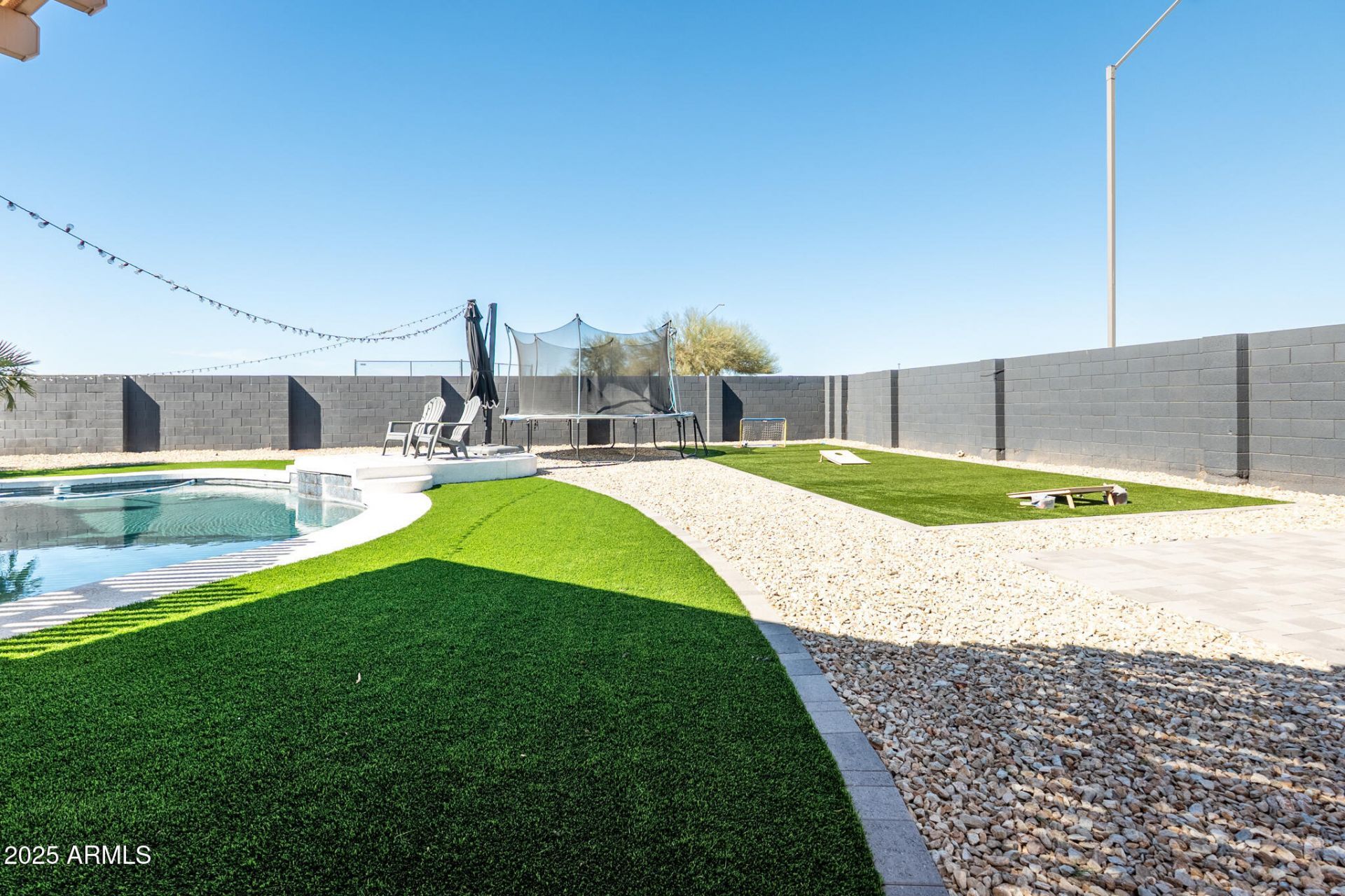 Remodeled home on a huge corner lot with a 3-car garage and resort-style backyard. Enjoy a sparkling pool, sunken ramada, and built-in BBQ--perfect for entertaining and family gatherings. Inside features a spacious open floor plan, brand-new modern flooring, and a newly installed A/C system for year-round comfort. The updated kitchen offers new cabinetry, upgraded countertops, and stylish gold and black finishes. A removed wall between the living and dining areas creates an open, airy layout with great flow. Beautifully upgraded inside and out, this home is a must-see.