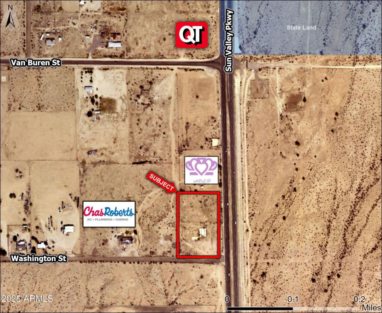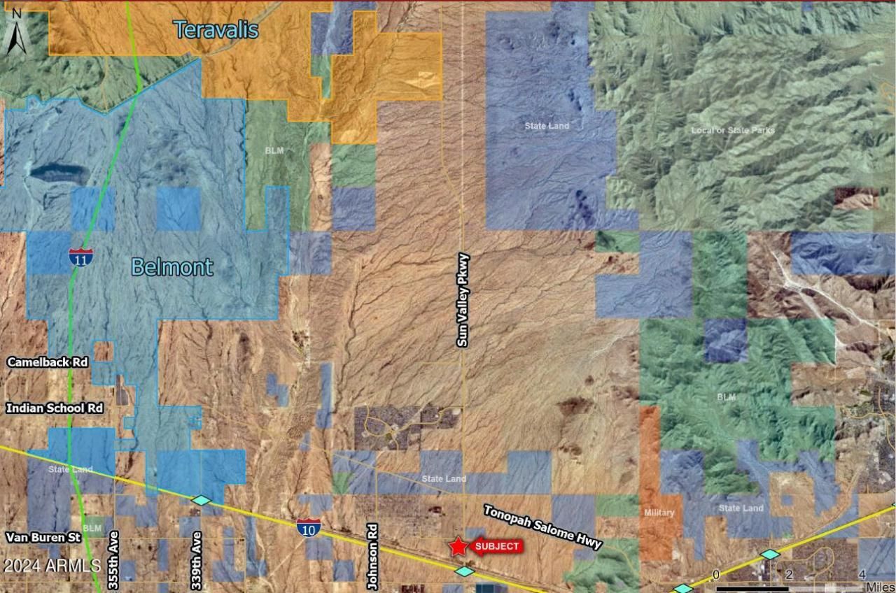 Excellent opportunity to develop commercial space in a vastly underserved part of West Buckeye.Hard Corner of Washington & Sun Valley Pkwy.Ability to exclusively serve the entire local population, including the sold out 2,918 lot Tartesso Community to the North, the 336 lot West Phoenix Estates community to the West, as well as the incoming 100,000 home Teravalis community, whos residents will all access their homes via the Sun Valley Pkwy. As of today, the entire existing local population (approximately 10,000 people) travel to I-10 & Watson for the nearest commercial service.Teravalis, formerly known as Douglas Ranch, began construction on 10/28/2022 and will reportedly create 1.5 jobs for every home.