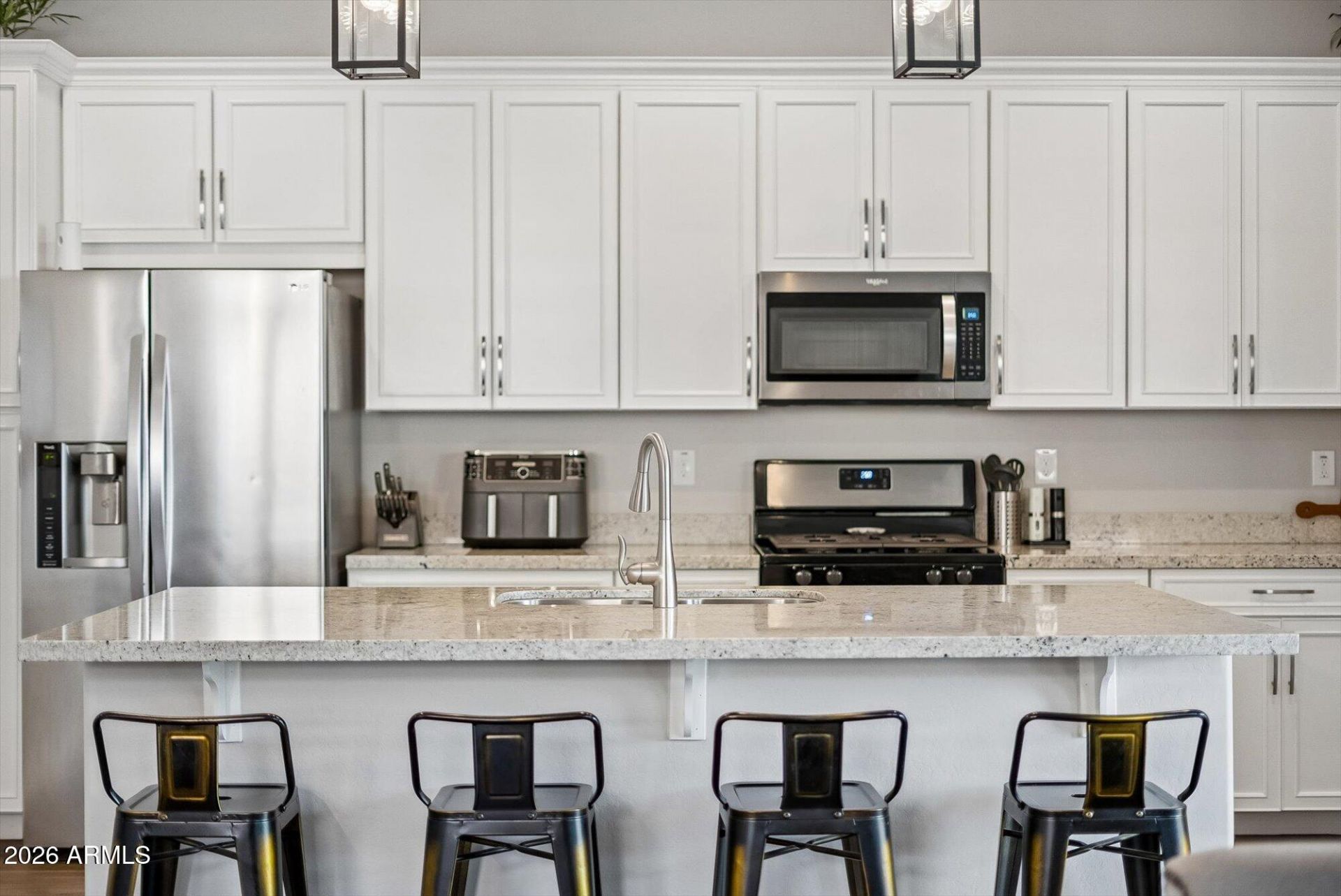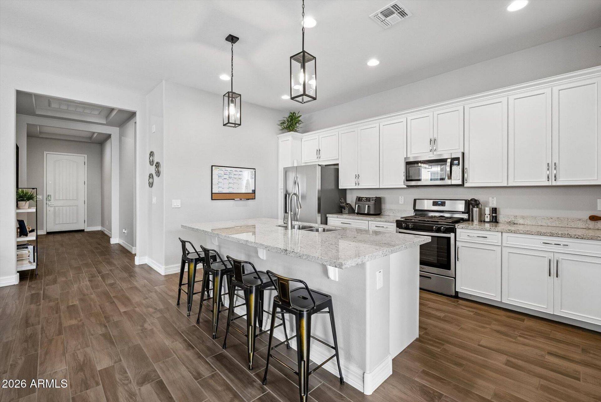 Beautifully upgraded and move-in ready in sought-after Homestead at Marley Park! This bright, open 3 bed, 2 bath home offers 1,760 sq ft, a split primary retreat, and a rare 2.5-car tandem garage. The spa-inspired primary bath features dual shower heads with a rain shower upgrade. Stylish finishes include wood-look tile, granite kitchen counters, upgraded kitchen and bath cabinetry, 5.5-inch baseboards, surround sound pre-wire, plus upgraded paver driveway and front walkway for standout curb appeal. Perfectly located near parks, schools, shopping, dining, and entertainment, this home blends comfort, style, and everyday convenience in one of Surprises most loved communities.