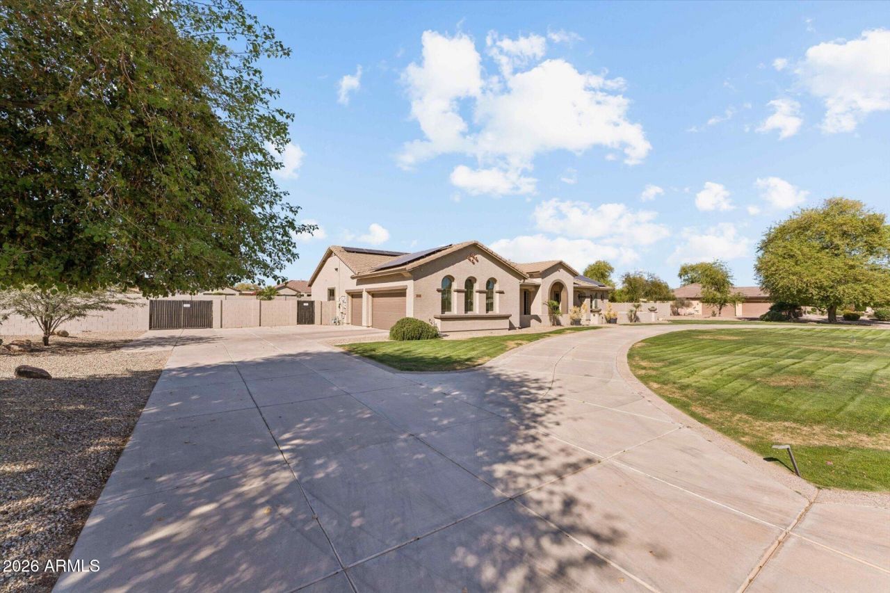 Welcome to your private desert retreat in the heart of Surprise. Situated on approximately one acre, this extensively remodeled property showcases more than $300,000 in thoughtful upgrades throughout the home, where every detail has been carefully designed for both luxury and functionality. Inside, the home features a stunning chefs kitchen with an oversized island offering built in seating for six, premium cabinetry, designer backsplash, and high end appliances. The space flows seamlessly into the main living area, creating the perfect environment for everyday living and entertaining. Two impressive 14 foot tri fold sliding glass doors, one located in the living room and the other in the primary suite, create a true indoor outdoor experience while filling the home with natural light. The primary suite offers direct access to a peaceful backyard retreat featuring a tranquil koi pond with waterfall, mature landscaping, and multiple seating areas designed for relaxation and quiet moments outdoors.Step outside and you will find a resort inspired backyard complete with a heated pool and spa, a private putting green, and beautifully designed outdoor spaces perfect for entertaining guests. One side of the property also features a dedicated garden area, ideal for growing plants, flowers, or vegetables.The paid off solar system adds valuable energy efficiency and long term savings.With RV parking allowed and plenty of room to spread out while still being conveniently close to city amenities, this property offers a rare combination of space, privacy, and luxury living in Surprise.