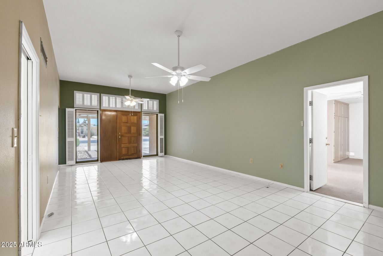 Location, location! Updated flooring (10/25) This 2118 sq ft 3-bedroom, 2.5-bath home in Sun City Phase 2 features fresh paint and no popcorn ceilings. Enjoy the added convenience of a half bath (2022) and a bright Arizona Room (2020). Dual pane windows. Ceiling fans. Block Fenced & mature shade trees Ideally located near Palmbrook Golf Course, Sundial Rec Center, and Bell Rec Center. Just needs some updates and buyers touch to make it your home.