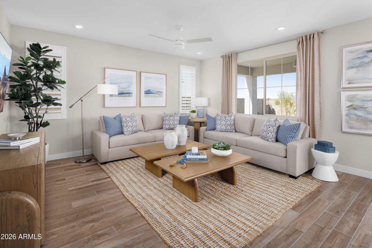 Stunning designer home at Windstone Ranch North! This beautifully crafted two-story home offers 4 bedrooms, 3.5 bathrooms, a flex room/den, and an upstairs loft. A full bedroom and bath plus a guest half bath are conveniently located on the first floor. Designed with the Enhanced C Style Package, the home features gray cabinets and upgraded finishes throughout. The open kitchen flows into the great room and dining area, ideal for entertaining. Upstairs includes 3 additional bedrooms, a versatile loft, and a private primary suite with a spacious walk-in closet. Enjoy a covered patio, oversized 7,500 sq ft corner lot with double gate, added privacy from adjacent green space, and a 3-car tandem garage. Close to parks, trails, and everyday essentials. Tour this beautiful new home!