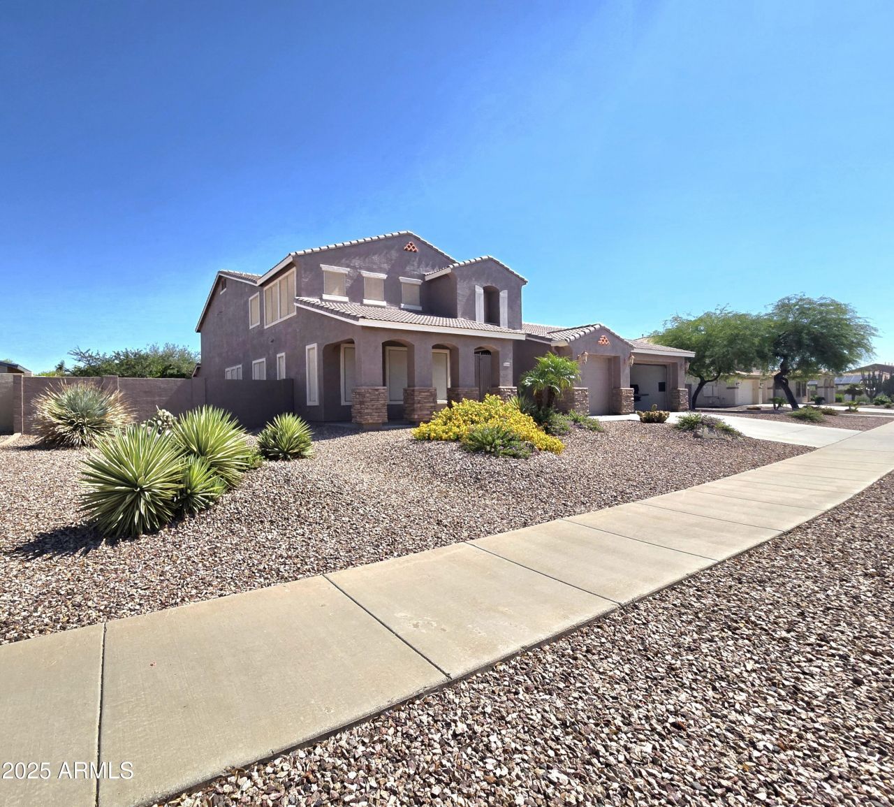Gorgeous Spanish Colonial Retreat on Expansive Lot. 7 Beds | 4 1/2 Baths | 5,200+ Sq Ft | .74 Acre Lot | 4-Car Garage + RV Parking. Step into timeless elegance and unmatched comfort in this stunning Spanish Colonial estate, ideally situated on a beautifully landscaped .74-in the heart of Surprise, AZ. This nearly 5,300 sq ft home offers abundant space with 7 bedrooms, including 3 luxuriousmaster suites???perfect for multi-generational living, guests, home office setups, and more. Rich plantation shutters, brand new neutral carpet, and elegant tile floors flow throughout, while a cozy gas fireplace adds a warm touch to the living space. Fresh exterior paint completes the look. The dream kitchen is an entertainers delight, featuring an extra-large island, granite countertops, stone backsplash. Whether youre hosting a dinner party or enjoying a quiet night in, this space is designed to impress. Outside, your resort-style backyard oasis awaits! Enjoy your lush desert and tropicallandscaping with automatic watering system, travertine hardscaped patio, firepit with vibrant blue fire glass, built-in BBQ kitchen under a covered patio, and a sparkling swimming pool withbuilt-in table and seating. A 13 rolling RV gate provides easy access for your RV, boat or toys with ample space to build your dream RV garage. The 4-car garage plus 200 sq ft workshop/storage shed adds even more functionality. BONUS: Refrigerator, washer, dryer, and deep freezer are included making this home truly turnkey ready. Close to top-rated schools, shopping, dining, and parks this home offers both luxury and convenience. Dont miss your opportunity to own this one-of-a-kind retreat in Surprise, AZ priced below appraised value of $1,130,000. Schedule your private showing today!