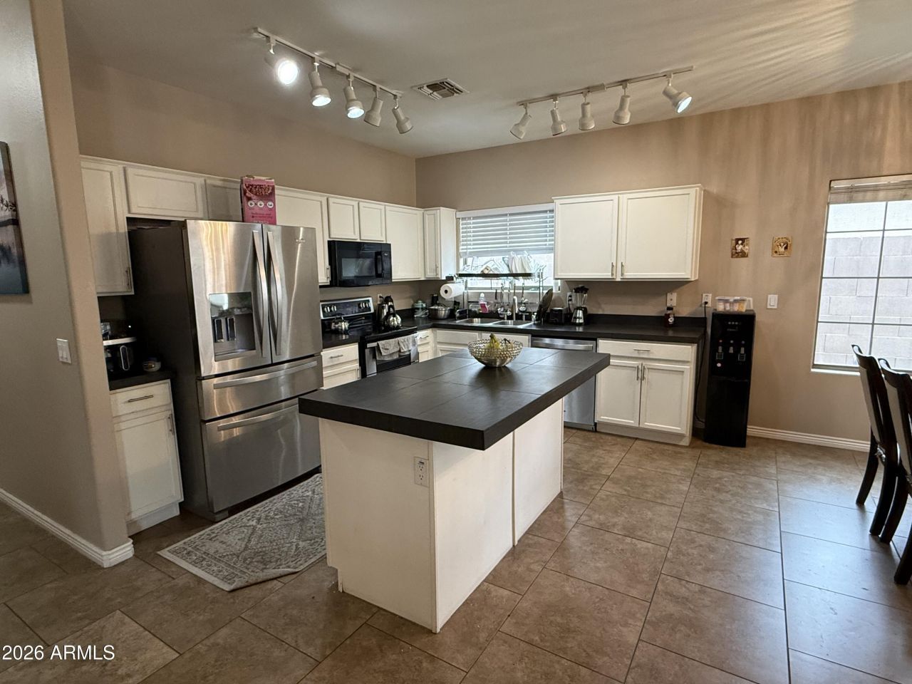 Located in the family-friendly Legacy Parc community in Surprise, AZ, this spacious two-story residence offers nearly 3,000 square feet of living space designed for comfort and modern utility. This gorgeous Capital Pacific Home features the Palmcroft/4029 floorplan, a 2,958 sq. ft. home featuring 4 bedrooms and 2.5 bathrooms, complete with a 3-car garage.Interior Features: Highlights include a stunning spiral staircase, neutral paint, and a mix of wood, laminate, and tile flooring.Kitchen: Equipped with a central island, white cabinetry, dual sinks, and an expansive walk-in pantry.Primary Suite: The massive master retreat includes French doors, a sitting room with a private balcony, his-and-her vanities, and a garden tub.Outdoor Living: The property features two covered back patios, a custom fire pit, and desert-inspired landscaping for easy maintenance.