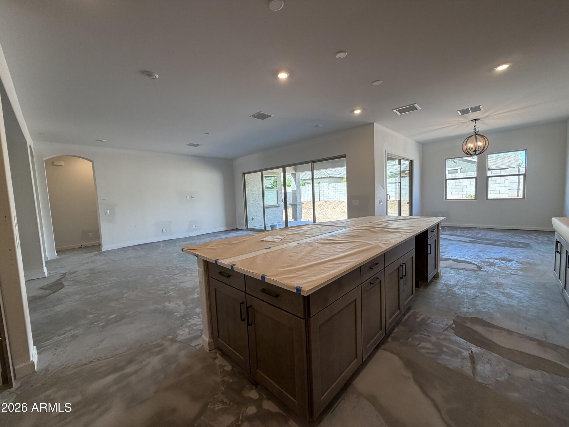 Single-Level Home with Private In-Law Suite - 3,262 SF - April Completion! Rare opportunity for a spacious multi-generational floorplan featuring an In-Law Suite plus 3 additional bedrooms, a large study, 4 baths, and a 3-car garage. The private suite includes its own living room with kitchenette, large bedroom, bathroom with shower, and two closets--perfect for extended family or long-term guests. Inside, youll find 10 ceilings throughout and a wide, welcoming hallway leading to a large dining area and bright open Great Room ideal for entertaining. The Gourmet Kitchen features a 36 cooktop with separate built-in oven and microwave, quartz countertops, designer tile backsplash, under-cabinet lighting, and pendant light pre-wires. A dramatic 16 Atrium sliding glass door opens the... Great Room to a spacious covered patio for seamless indoor-outdoor living. The luxurious primary bath includes dual sinks and a spa-inspired walk-in shower with dual showerheads. Additional upgrades include 8 interior doors, two-tone paint, ceiling fans, window blinds, and a gas stub for BBQ. The home also includes an EV charging outlet, Wi-Fi-enabled garage door opener, tankless water heater, and soft water loop. Other highlights include coach lighting, a paver driveway, and a front yard landscaping credit. Built for efficiency, the home is ENERGY STAR® Certified and Indoor AirPLUS rated, delivering superior energy savings and healthier indoor air. Located in a vibrant master-planned community with miles of scenic pathways and resort-style amenities including an impressive aquatic center with a large pool with splash features and a lap pool, picnic areas with BBQ grills, multiple playgrounds, basketball, sand volleyball, pickleball courts, bocce ball, ping pong, cornhole, and more.