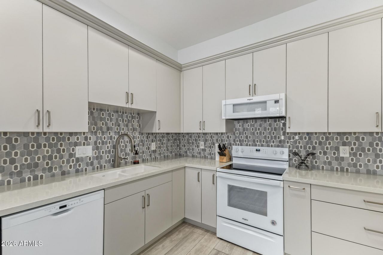 Amazing opportunity to purchase this one of a kind impeccably upgraded & maintained one story pool home in Surprise! Extremely energy efficient with FULLY OWNED SOLAR, UPDATED HVAC, TANKLESS GAS WATER HEATER. Interior boats newer wood tile flooring and fully remodeled kitchen with gorgeous quartz counters, abundant new cabinetry with crown molding, custom tile backsplash, recessed lighting and matching appliances making everyday cooking a breeze. Dont miss the impeccable main bedroom, offering a walk-in closet and a functional & beautiful new barn door to the private bathroom. Newer interior and exterior paint and two car insulated garage with mini split. Imagine peaceful afternoons under the private covered patio, or take a refreshing dip in the sparkling pool. Dont miss out!