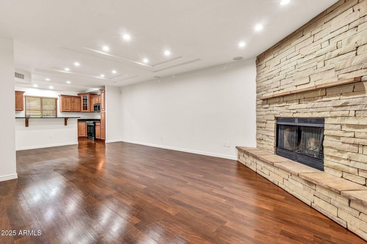 Move-in ready! Home boasts new kitchen appliances (fridge, stove, dishwasher, microwave), new TRANE HVAC & air handler with warranty, new interior and exterior paint, 4 bedroom 2.5 bathroom condo with downstairs and upstairs primary bedrooms with walk in closets!!! Located in close proximity to the Fountain Park and local restaurants and activities. Upgrades include ceiling fans, custom cabinetry, granite slab counter tops, dramatic coffered ceilings, stacked natural stone fireplace. Mini-split cooled upgraded one car garage. Lots of storage. There is a convenient community pool in the 13 unit community for you to enjoy. To create the additional bedrooms, in 2009 the loft was professionally sealed off. All work was owner designed, engineer approved and performed by a licensed contracto