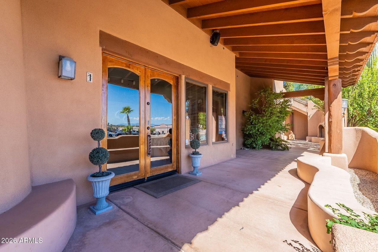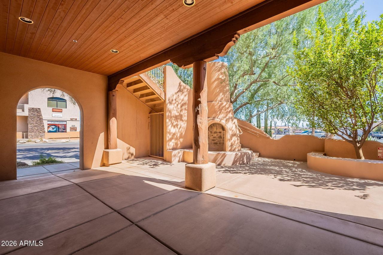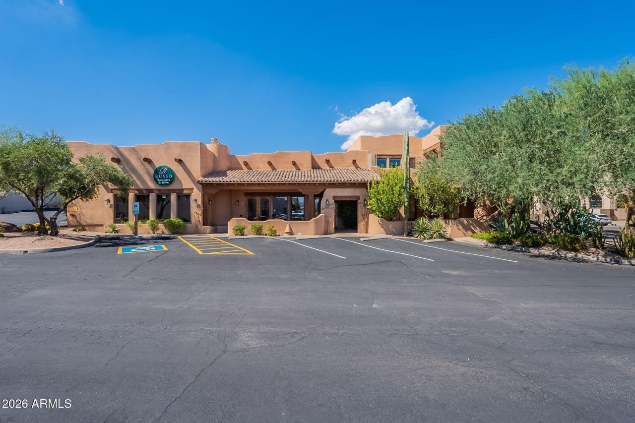Extraordinary live-work opportunity located in Fountain Hills. This well-maintained property offers significant versatility for various professional or residential uses.The first level currently functions as a salon, featuring several treatment rooms equipped with sinks. It includes an outdoor bathroom and an outdoor living space complete with a fireplace.The second story, completed in 2025, provides additional living space consisting of one bedroom, a dining area, and a living room. This level features a fireplace, in-unit laundry facilities, and a clear view of the Fountain Hills fountain.Given the unique nature and high quality of this space, it is certainly worth a Tour.