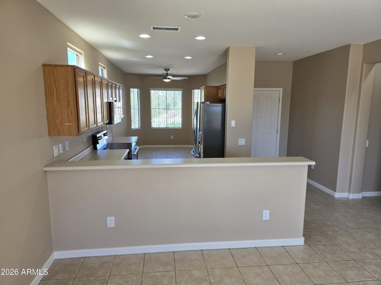 This wonderful property located in The Grand, a 45+ adult community, features all new LG Stainless appliances, new inside & out paint, new interior doors/hardware, new ceiling fans, new kitchen sink, over-sized garage & private fenced backyard/patio with no neighbors behind! Living room features large media wall w/shelves. Whole house is tiled, no carpet. One wall of the oversized, extra-deep (25) garage is lined w/ custom built-in shelving. Utility sink in garage. Built-in alarm system. Seller will provide Buyer with a 1 year home warranty. Perfect property for owner occupied or seasonal rental! This wont last long for this price!