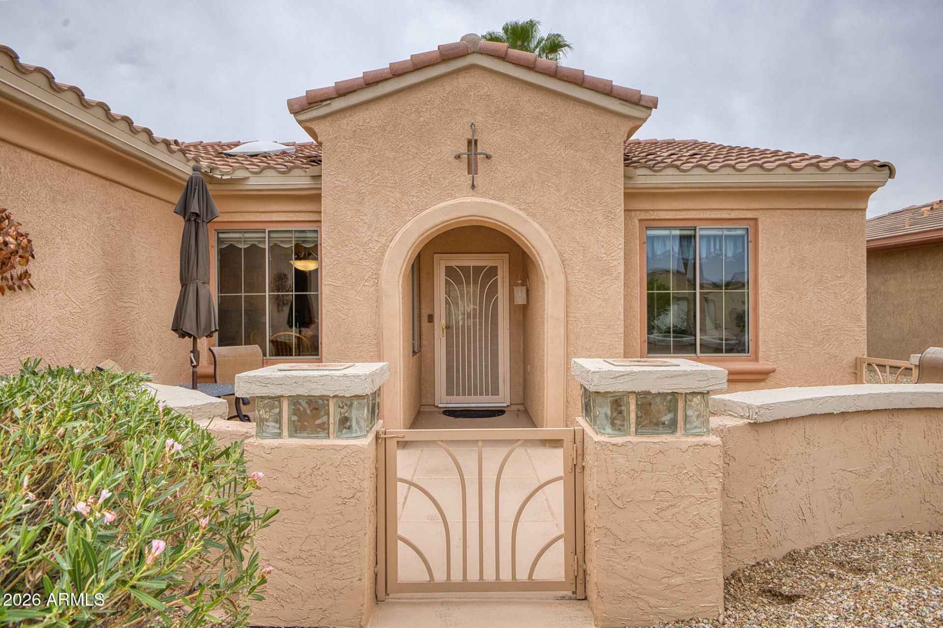 Original owner Cactus Flower 3 bedroom split plan. Neutral tile in all the right places & new carpet in the bedrooms. Excellent outdoor living space including a walled in courtyard & extended patio with water feature, built in bbq and landscape walls. Many windows replaced in the home where needed. Open kitchen with skylight, pantry, maple cabs & stainless appliances. Indoor laundry with cabinets, washer dryer included. Primary bedroom bay windows, 2 vanities, walk in closet with custom shelving & additional closet in primary bathroom. Ceiling fans. Exterior painted 2025,HVAC updated 2018,HWH updated 2023. Cool coating on driveway,sidewalk,courtyard & patio. Garage floor epoxy. Roof underlayment partial 2024. Near Cimarron Center, golf, pickleball, pools, day spa and activities.