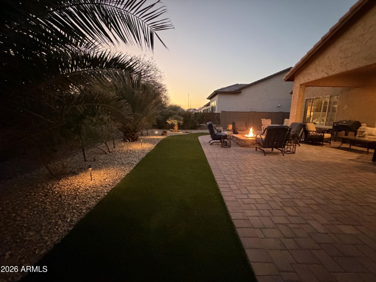 Fully Furnished and golf cart available on separate bill of sale. Beautifully maintained Montecito model located in the highly desirable PebbleCreek 55+ active adult community. This thoughtfully designed home offers 2 bedrooms, 2 bathrooms, plus a den, providing the perfect balance of comfort and flexibility.The upgraded kitchen is a standout feature, showcasing quartz countertops, modern finishes, and ample cabinetry--ideal for both everyday living and entertaining. The open layout flows seamlessly into the living and dining areas, creating a bright and inviting space.Step outside to a beautifully landscaped backyard designed for relaxation and entertaining, complete with a cozy fireplace and firepit--perfect for enjoying Arizona evenings year-round. Residents of PebbleCreek enjoy resort-style amenities, golf, dining, fitness centers, and an active social lifestyle. This home offers the ideal combination of low-maintenance living, upscale upgrades, and an exceptional community. pebblecreek features over 220 clubs and organizations, 3 championship golf courses, 36 pickleball courts, 3 resort style swimming pools, fittness centers and more!Dont miss the opportunity to own this move-in-ready home in one of the West Valleys most sought-after 55+ communities. Note furniture available on separate bill of sale