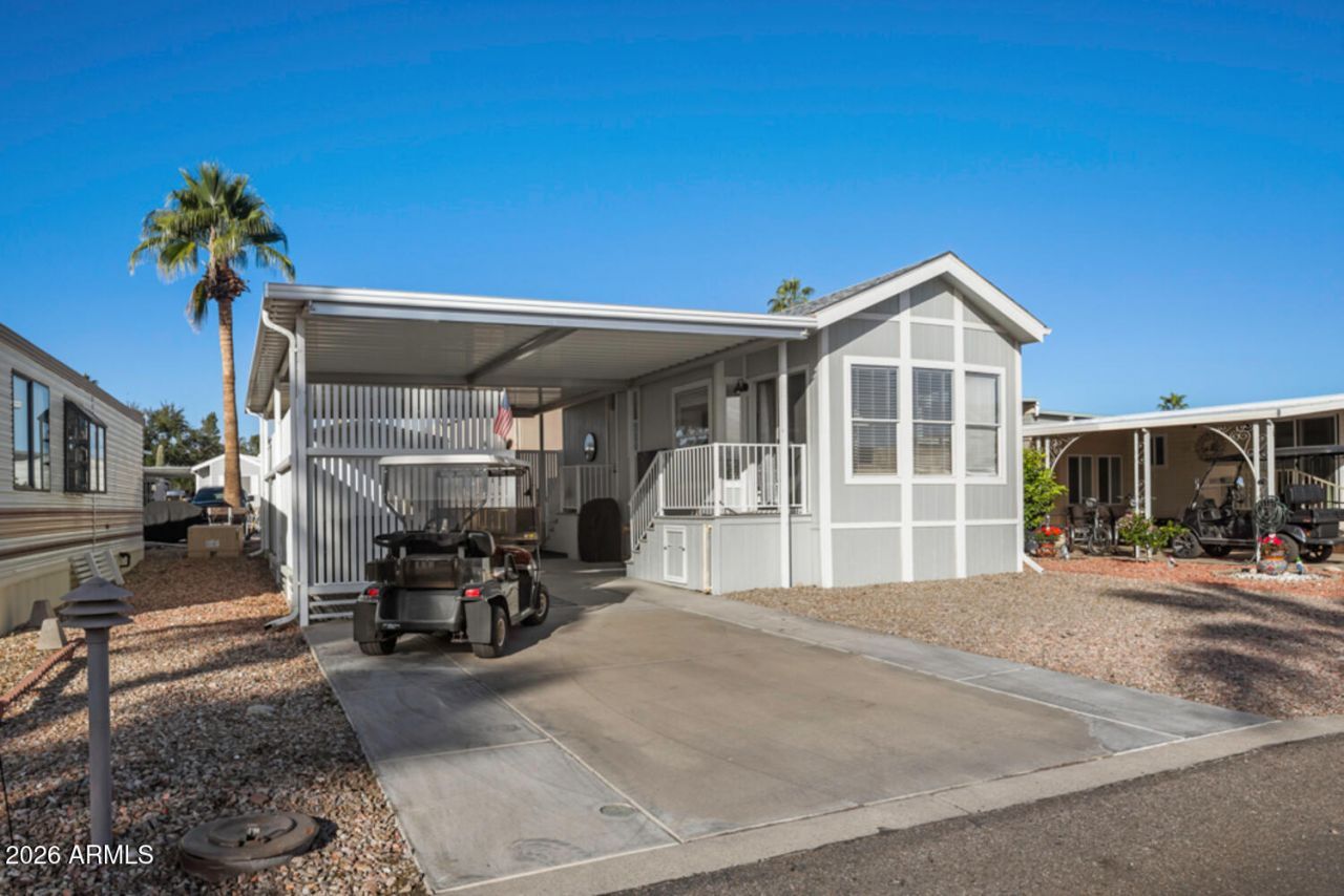 Check out this beautiful updated Park model with large covered patio for all your entertaining! Home features 1 Bed/1 Bath. Built in 2013. Lots of natural light (East facing),New large walk-in shower, NEW Luxury vinyl flooring, NEW Stainless Steel Appliances, NEW white plantation blinds, NEW Hot water heater for Laundry, NEW 72 Ceiling fan for the patio. There is also a storage shed with washer and dryer. Home being sold furnished so you can move right in!! Happy Trails is a 55+Active Adult Community with 14 Pickleball courts , 4 Pools, 5 Tennis Courts, 7 Hot Tubs, Sawmill, Golf, Activities and so much more.See this one today!!