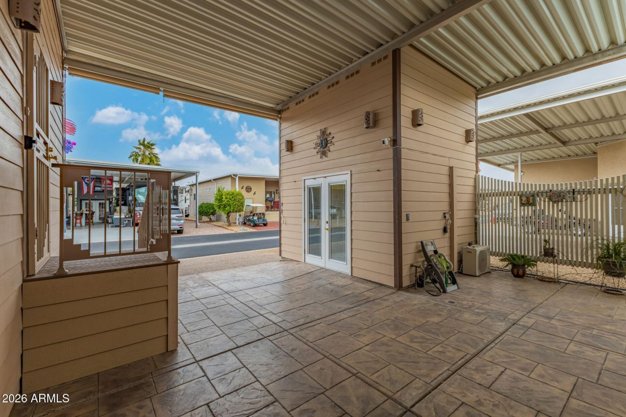 A rare find! Comfort meets convenience in this lovely 2-bedroom snuggle-wide with carport parking and a relaxing front patio, and casita workshop. Inside, the inviting living & dining room is the true focal point, highlighted by a cozy fireplace that adds warmth and character. Vaulted ceilings, bountiful natural light, wood-look flooring, and ceiling fans enhanced the overall appeal. The kitchen comes with matching appliances, mosaic tile backsplash, white cabinets, a pantry, and granite counters. Discover the large main bedroom, offering an ensuite with a soaking tub and a walk-in closet. Detached bonus room can be converted into an extra bedroom or hobby space. Enjoy the exceptional Community amenities and all the lifestyle benefits they offer.
