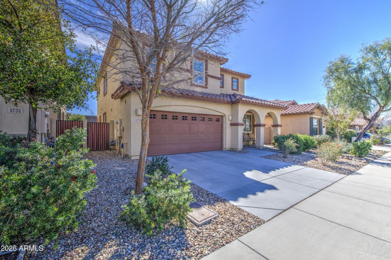 Beautiful 2-story home featuring 5 bedrooms, 3 full baths, and a versatile open-concept floor plan. One bedroom and full bath conveniently located downstairs???ideal for guests or multi-generational living. Enjoy wood-look tile flooring throughout the main living areas, a spacious loft perfect for a home office, playroom, or media space, and a beautifully appointed kitchen with upgraded cabinetry, a large center island, granite countertops, stainless steel appliances and ample storage. Step outside to your private backyard oasis with a sparkling pool and low-maintenance artificial turf???perfect for entertaining or relaxing year-round. Easy access to Loop 202, nearby shopping, dining, and commuter routes makes this home both stylish and conveniently located.