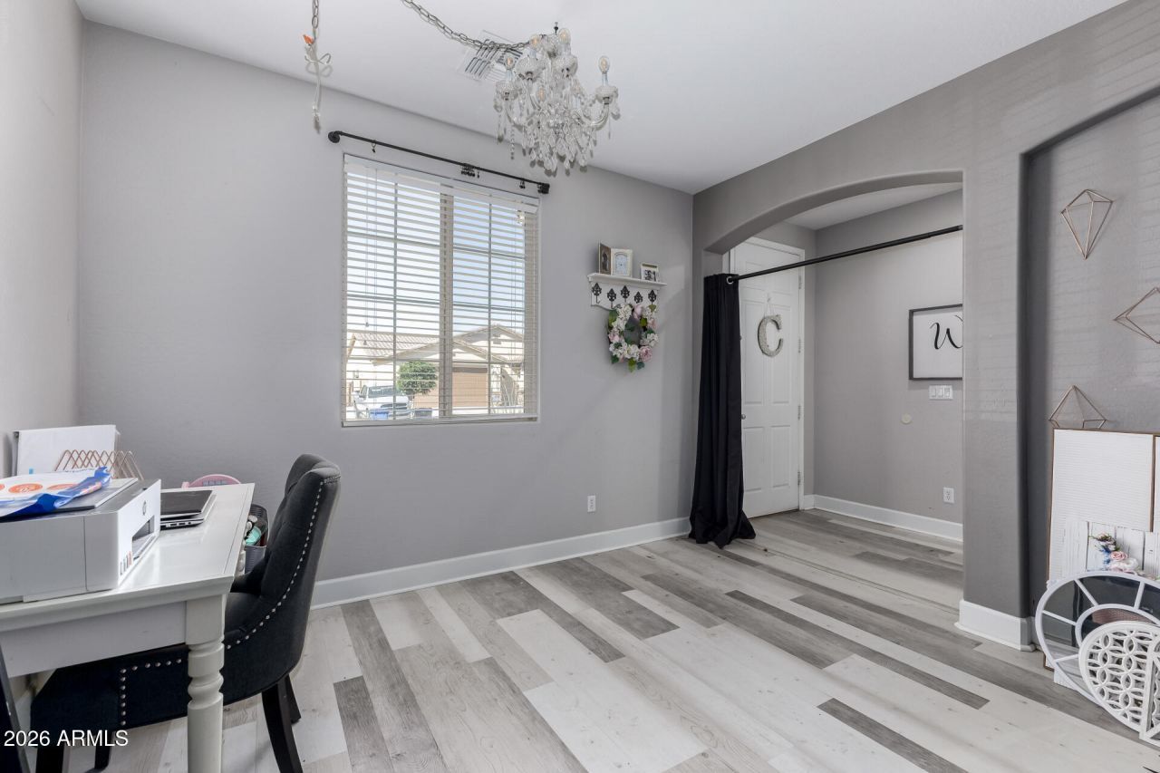 This charming home with POOL in Desert Oasis is the one! Offering 3 beds + den, 2 baths, and a 3-car tandem garage. Reverse Osmosis & water softener. The inviting interior features tons of natural light, tall ceilings, a neutral palette, wood-look flooring in common areas, new carpet in bedrooms (Jan/2026). Excellent floor plan with a formal dining room and great room. Kitchen boasts SS appliances, granite counters, recessed lighting, ample white cabinets, a pantry, and a 2-tier island w/breakfast bar. The versatile den (home gym, office, playroom). Enter the main bedroom to find an ensuite with dual sinks, separate tub/shower, & a walk-in closet. The backyard is an entertainers delight, covered patio, lush lawn, fenced sparkling pool (new pump 2025) for year-round enjoyment