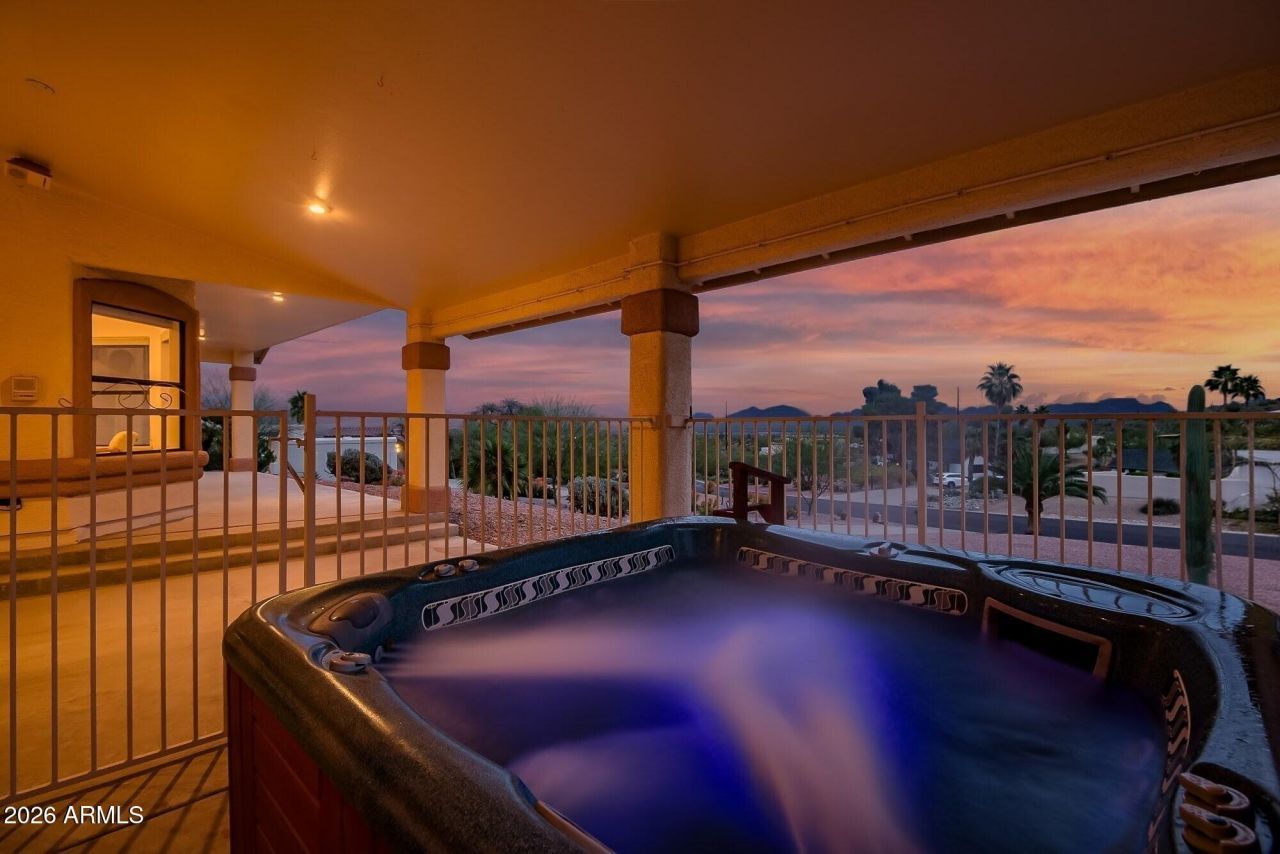 Perched on an elevated hillside in Fountain Hills, this stunning 4-bedroom, 3-bath single-story home offers breathtaking panoramic views of desert sunsets, mountain silhouettes, and sweeping valley vistas that create rare privacy and tranquility. Located just over the hill from Fountain Park and the world-famous Fountain Hills Fountain, youre minutes from scenic walking paths, community events, and dining. Inside, a bright open-concept layout features a spacious kitchen flowing into sun-filled living and dining areas with picture windows framing the desert landscape. The primary suite offers separate his-and-her bathrooms with patio hot tub access and evening views toward the Superstition Mountains. Ultimate freedom to customize on this expansive no HOA lot.