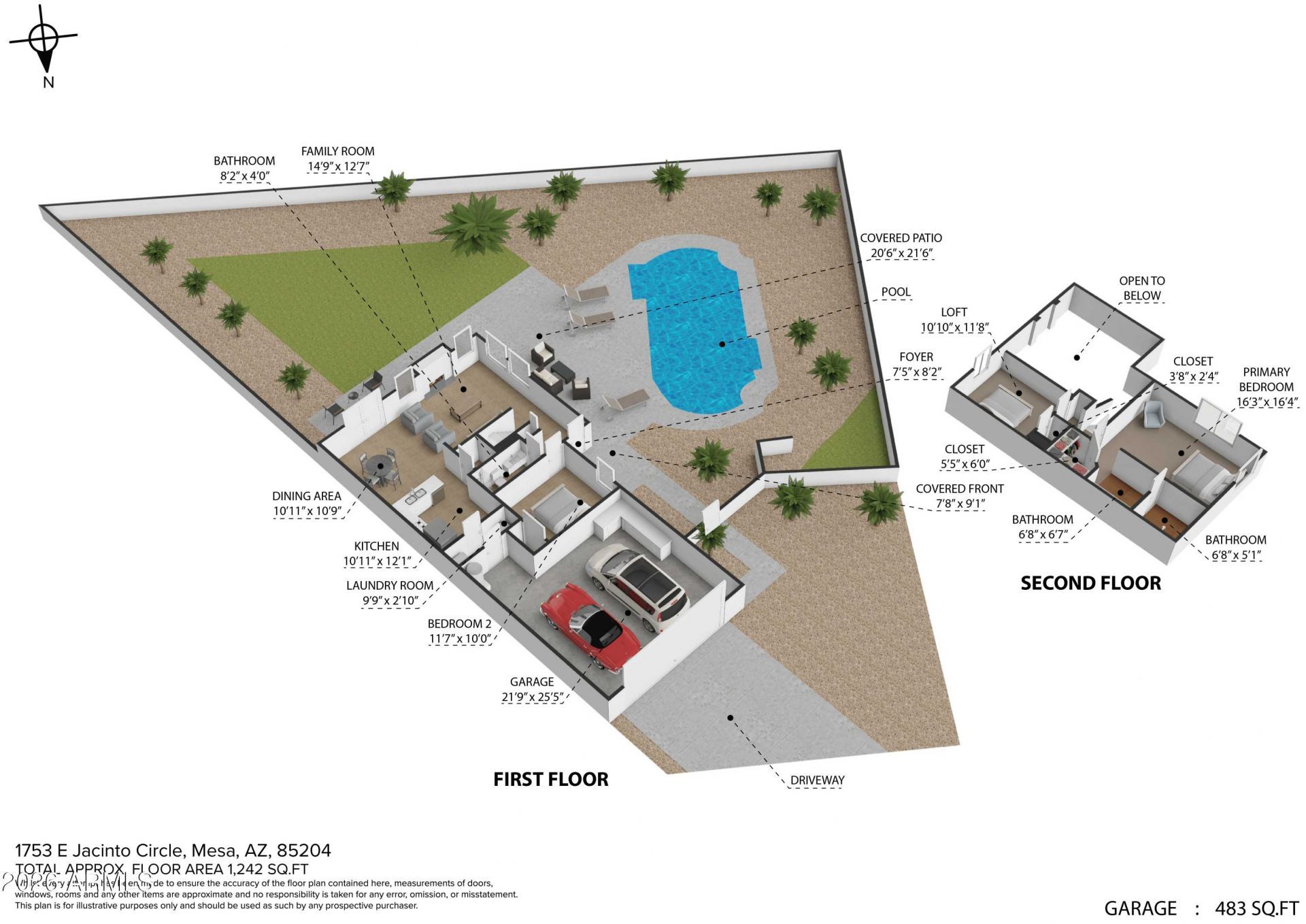 Take advantage of a valuable opportunity with $10,000 in SELLER CONCESSIONS offered, perfect for a rate buy-down or help with closing costs. Located on a desirable CUL-DE-SAC lot with NORTH/SOUTH exposure in a prime Mesa Gilbert border LOCATION, this home sits on an OVERSIZED lot with a private POOL, offering an ideal combination of space, comfort, and convenience. Inside, you will notice BRAND-NEW LVP flooring throughout the main level, giving the home a fresh, modern feel.The versatile SPLIT floor plan is designed to fit a variety of lifestyles, with a BEDROOM AND FULL BATHROOM DOWNSTAIRS, perfect for guests, multi-generational living, or a private home office. Upstairs, additional bedrooms and a loft-style space provide even more flexibility depending on your needs Step outside and discover your own private retreat. The spacious backyard features a large pool and a NEWLY BUILT covered patio, ideal for relaxing or entertaining, with PLENTY OF ROOM to personalize the space further.Additional highlights include fresh interior and exterior paint, updated lighting, and a bright eat-in kitchen, making this home truly move-in ready. The seller is also prepared for a quick close, adding convenience for buyers.With easy biking or walking access to downtown Gilbert and close proximity to great schools, hospitals, shopping, dining, ASU, MCC, and major freeways 60, 101, and 202, the location is hard to beat.Oversized lot, cul-de-sac setting, and plenty of potential, this is a home worth seeing.