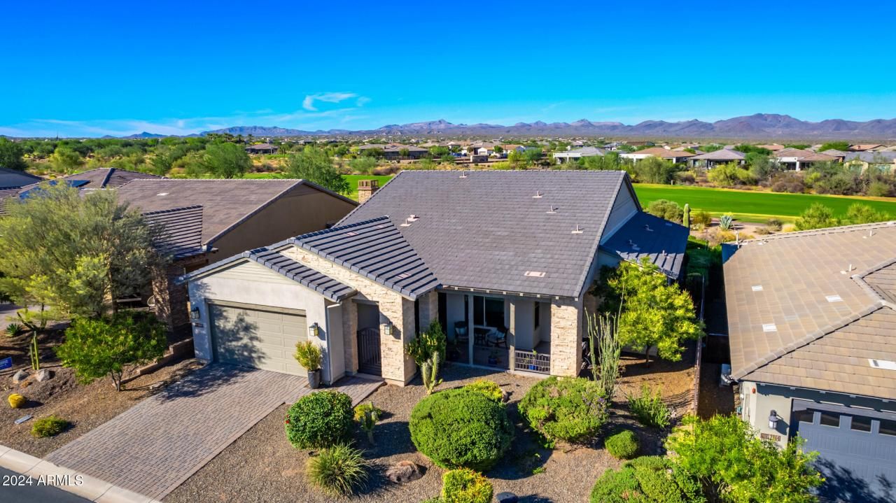 What a View! Enjoy breathtaking vistas of the 11th Fairway & mountain backdrop from this stunning backyard oasis. This meticulously designed 3-bedroom, 2.5-bath Brasada floorplan features a versatile den, an open-concept kitchen/great room, & high-end finishes throughout. The gourmet kitchen boasts a gas stove/oven, spacious island, wine refrigerator, & cozy breakfast area???all in a refined palette of grays & whites complemented by Hunter Douglas blinds & motorized patio shades. Step outside to a private, fenced patio where you can soak in the hot tub, unwind by the fire pit, & savor the views in complete serenity. An automatic watering system keeps the lush landscaping pristine year-round. Dont miss this exceptional opportunity to call Rio Verde home???where luxury and community converg