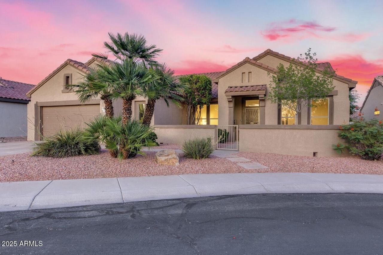 Welcome to your perfect active-adult haven in The Grand, a premier 45+ community renowned for its resort-style living! This beautifully remodeled 3 bed / 2.5 bath home with a den features a gourmet kitchen with quartz countertops, a spacious island, brand new stainless steel kitchen appliances, and abundant cabinetry - ideal for entertaining or everyday living. The primary suite boasts a separate tub and shower for added luxury, plus, no carpet throughout the home offers a clean, modern feel. Enjoy Arizonas breathtaking sunsets from the large covered back patio. Residents of The Grand enjoy access to world-class golf, dining, recreation centers, fitness centers, and so much more!