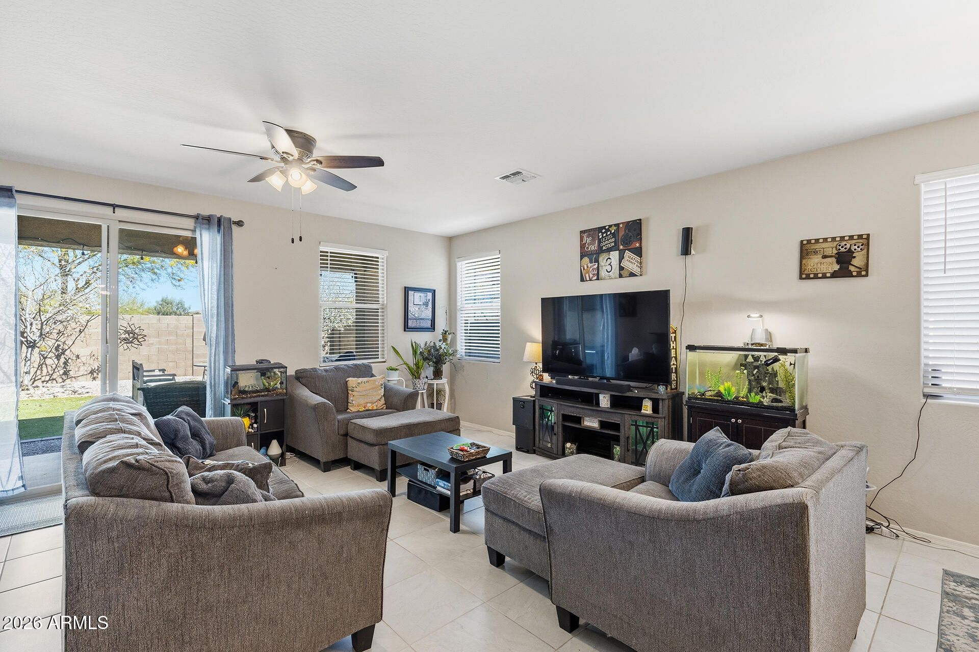 Backs to a park with a 3-car garage, split floor plan, and a huge kitchen - all in one! This 4 bed, 2.5 bath home offers 1,884 sqft of well-designed living space. The kitchen is complete with granite countertops, a center island, breakfast bar, stainless steel appliances, and abundant cabinet space - ideal for cooking and entertaining. The open great room layout provides seamless flow and direct patio access. The backyard features a covered patio, low-maintenance turf, and beautiful paver accents. Residents also enjoy fantastic community amenities including a playground, pool, and more - creating a welcoming neighborhood atmosphere. Comfort, space, and community living come together beautifully in this move-in ready home!