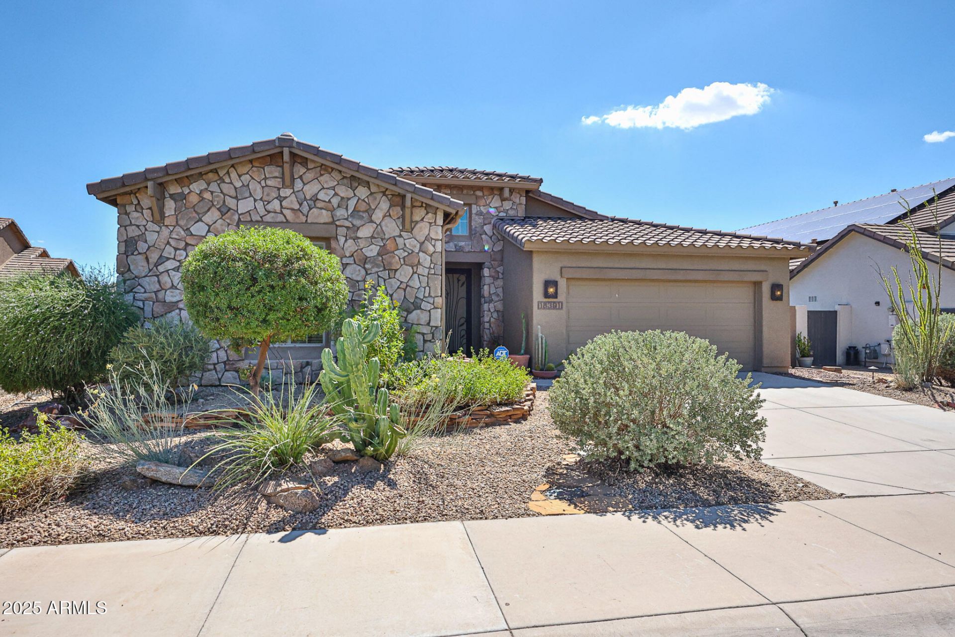 Welcome to this beautifully designed 4-bedroom, 2-bathroom retreat that blends timeless elegance with everyday comfort. From the moment you arrive, the charming stone accents and lush desert landscaping create a warm sense of arrival. Step inside through the unique round foyer and discover a thoughtful floor plan designed for both relaxation and entertaining. Tile flooring flows through the high-traffic areas, primary suite, and front bedroom, while brand-new carpet adds a touch of luxury to the remaining two bedrooms. Entire interior was recently painted provding a fesh, crisp feeling throughout. The formal dining room, highlighted by a custom-built wine room, is the perfect setting for dinner parties or showcasing your favorite vintages. Just beyond, the spacious kitchen inspires creativity with a gas stove, stainless steel appliances, abundant cabinetry, and a sunny dining nook that opens seamlessly into the family room. A dramatic stone-accent wall with a cozy gas fireplace anchors the space, inviting gatherings both large and small.The primary suite feels like a private sanctuary, offering a spa-like bathroom with an oversized walk-in shower designed for relaxation at the end of the day.Step outside and experience true resort-style living. With no homes behind and peaceful mountain views, this backyard was made for entertaining and unwinding. Whether youre hosting summer barbecues or quiet evening dinners, the heated sparkling pool with a rock water feature, mature fruit trees, flagstone patio, built-in BBQ, and covered seating area provide the ultimate outdoor lifestyle.Living here means more than just a beautiful homeit means becoming part of the vibrant Estrella Mountain Ranch community. Enjoy access to two resident clubs with fitness centers and pools, scenic lakes for kayaking and fishing, a championship golf course, and miles of hiking and biking trails that invite adventure. With neighborhood parks, award-winning schools, and a calendar full of community events, Estrella offers a lifestyle as rich and welcoming as the home itself.
