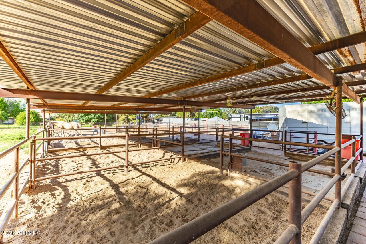 Your dream horse property in Queen Creek! This well-equipped horse setup features irrigated pasture, a lighted arena, and lighted stalls complete with fans and automatic waterers for year-round comfort and convenience. Additional amenities include a tack room, dedicated ATV garage, storage shed, rolling RV gate, and full RV hookup with dump. Designed for both functionality and ease of care, this property is ideal for horse enthusiasts seeking space and efficiency. The 3 bedroom, 2 bath home offers comfortable living with room to relax after a day at the arena. A rare opportunity to own a fully equipped horse property!