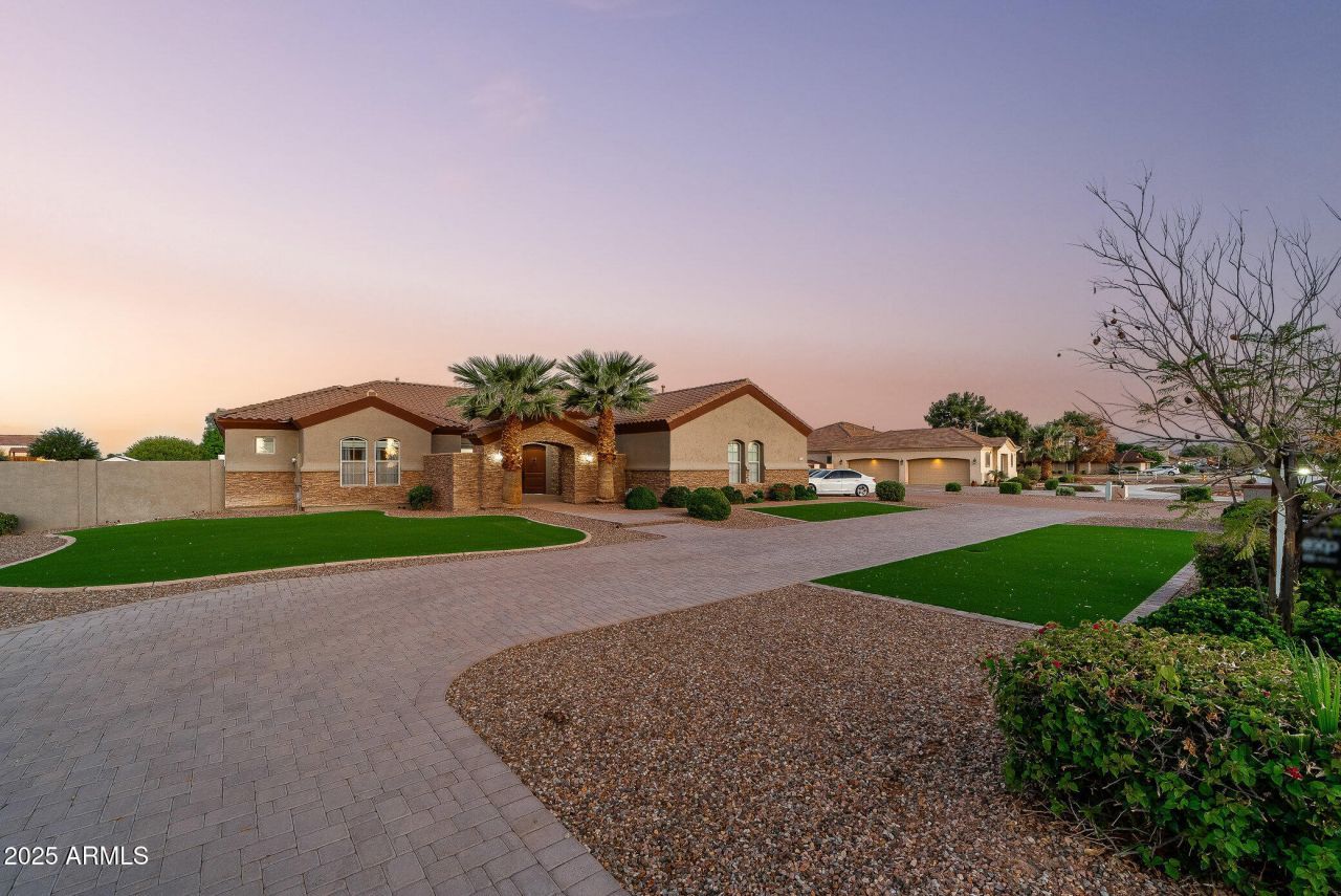 Set on a full acre, this stunning home offers a perfect blend of comfort, style, and outdoor living! A charming courtyard entry and circular paver driveway create beautiful curb appeal, complemented by desert landscaping with synthetic grass accents. Solar panels add energy efficiency, while an RV gate and 3-car side-entry garage provide plenty of parking and storage. Inside, youll find bright living areas, a spacious den, and ample bedrooms designed with comfort in mind. The equipped kitchen makes cooking and entertaining effortless. Expansive oasis-style backyard has a covered patio, a sparkling pool and spa combo, a basketball court, and no neighbors behind for privacy. This residence delivers the perfect setting! Hurry!