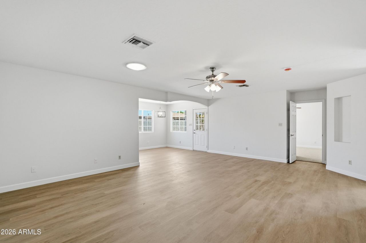 Fresh updates make this 3-bedroom, 2-bath home move-in ready with great curb appeal, featuring fresh exterior paint and new rock landscaping in the front yard. Inside, enjoy fresh interior paint, new baseboards, updated light fixtures, new carpet, and durable LVP flooring that create a bright, clean feel throughout. The kitchen offers ample cabinetry and counter space and flows easily into the dining and living areas for comfortable everyday living. Both bathrooms have been refreshed for a modern touch, and a new HVAC system adds year-round comfort and efficiency. The spacious backyard with a covered patio provides plenty of room to relax, entertain, or personalize to your style.