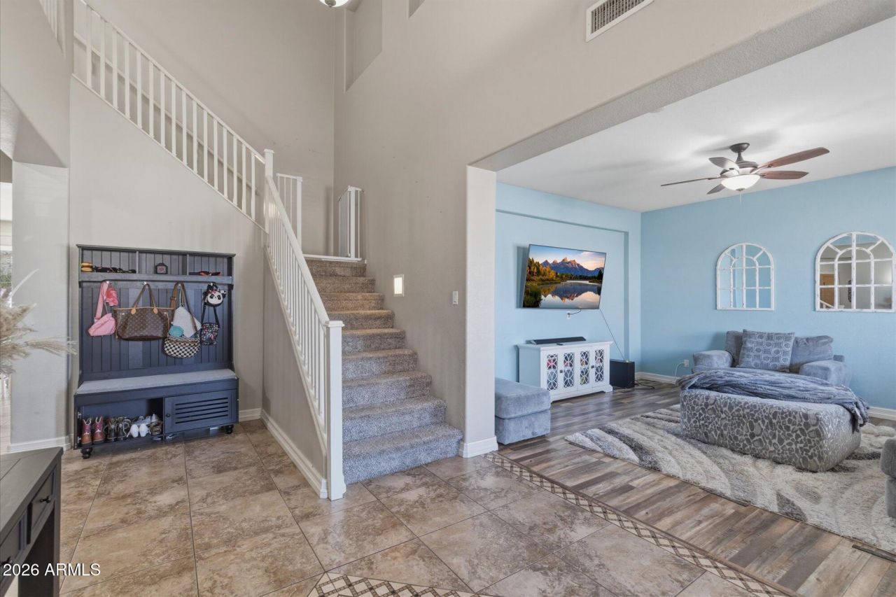 Nestled in the coveted Cortina neighborhood, this beautiful home offers the perfect blend of space, comfort, and lifestyle. The open floor plan features four bedrooms, a dedicated office, and an upstairs loft ideal for a second living area or playroom. The kitchen with new appliances opens seamlessly to the main living spaces and a bonus room, creating a great setup for everyday living and entertaining. Backing to a greenbelt and surrounded by community amenities, the location is hard to beat. The backyard is a private retreat with a pool, spa, fire pit, and grilling area--perfect for Arizona evenings. Walking distance to A rated Cortina Elementary and featuring desirable north/south exposure for cooler afternoons and ideal pool days. Love, love, love!