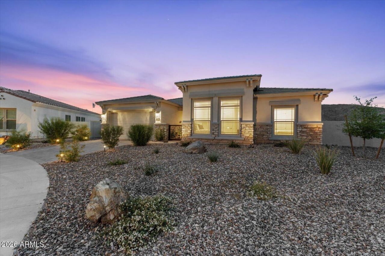 Exquisite 2024 David Weekley residence set on an expansive premium corner lot, offering a rare blend of modern luxury, thoughtful design, and breathtaking mountain views. This single-level home showcases impeccable craftsmanship and comes complete with structural and HVAC warranties for ultimate peace of mind.A private gated courtyard creates a grand sense of arrival, leading into an elegant interior defined by soaring 12 ceilings, wood-look plank tile, and expansive windows that flood the home with natural light and Stunning Mountain Views. The open-concept floor plan features 4 bedrooms, 3 full bathrooms, and two versatile flex spaces ideal for a private office, media lounge, or bespoke lifestyle needs.At the heart of the home, the gourmet chefs kitchen is a true showpiece-- anchored by an oversized quartz island and appointed with a gas range and designer hood, custom backsplash, floating shelves, under-cabinet lighting, deep stainless sink, and an expansive walk-in pantry with glass entry. Custom cabinetry with soft-close features and elevated fixtures complete the space with timeless sophistication.The split floor plan offers exceptional privacy, including a guest ensuite perfect for visitors or multigenerational living. Secondary bedrooms feature walk-in closets, while the primary suite is a luxurious retreat with a spa-inspired bath, including a soaking garden tub, oversized shower, dual vanities, and refined quartz finishes as well as a large walk-in closet.Seamless indoor-outdoor living is achieved through a dramatic corner sliding glass wall, opening to a resort-style backyard designed for year-round enjoyment. The extended patio overlooks a newly completed PebbleTec pool with Travertine deck (2025) featuring a Baja shelf, waterfall, in-floor cleaning system, and saltwater technology--all controllable via app. Mature citrus trees and a fully gated pool area enhance both beauty and privacy.Additional highlights include a 3-car tandem garage with storage systems and utility sink, RV gate, paver driveway and entry, ceiling fans throughout, and elevated design details at every turn.A rare opportunity to own a nearly new, highly upgraded luxury home where no detail has been overlooked.
