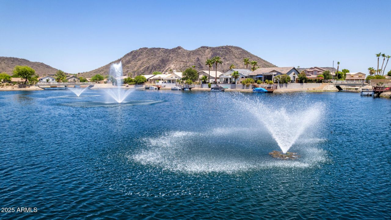 Enjoy this spectacular waterfront home with incredible lake views! Fully renovated neighborhood gem featuring custom granite countertops, glass tile backsplash, smudge-proof stainless steel appliances, washer and dryer, and neutral tile throughout. Newer AC, hot water heater, and microwave - all installed in 2022. The attention to detail is what makes this lakeside home so special! Set in the highly desirable Arrowhead Lakes community, this pristine home features neutral tones that appeal to all palettes, custom faux wood blinds, solar screens for hot summer days, and updated contemporary fixtures. The garage is freshly painted with epoxy flooring and loads of cabinet storage! Seller is a licensed real estate agent in Arizona. Ready-to-activate Smart Home features include new Ring Doorbell Pro, Sensi remote thermostat, SimpliSafe security system, and Sifely electronic door lock. Easy access to the 101 and close proximity to hiking, boating, fishing, parks, shopping, restaurants, sports, education, healthcare, and entertainment! Beautifully landscaped, large private corner lot in a quiet neighborhood with top-rated schools. This move-in ready, lakefront oasis is completely turn-key and ready for you to make it your home!