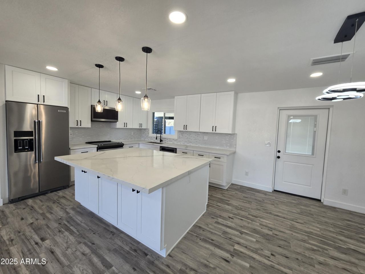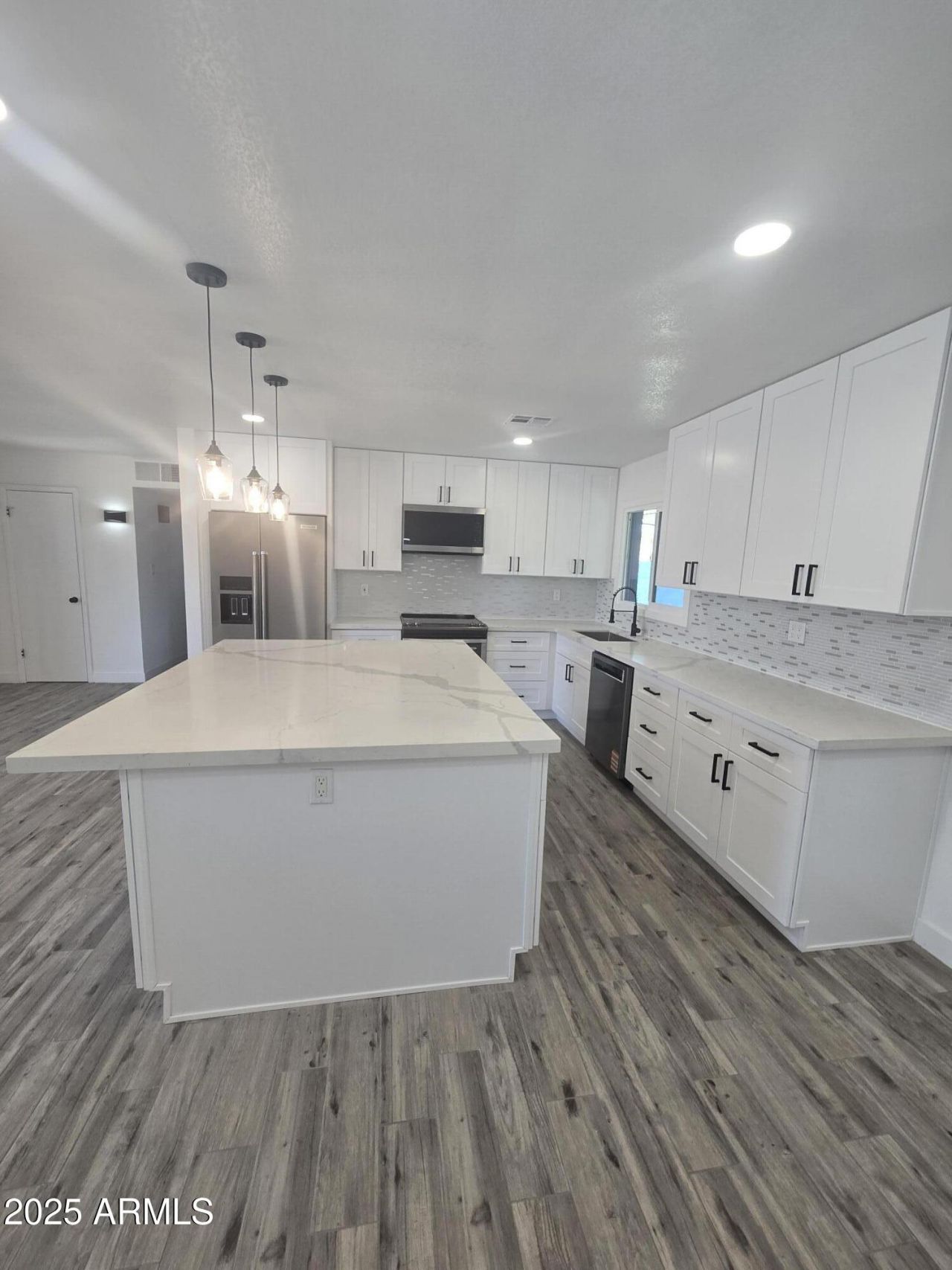 Turn-key, beautifully remodeled 3-bedroom w/ 2-car garage and long driveway for ample parking with north/south exposure & multiple storage areas. New cabinets in kitchen w/ beautiful backsplash & bathrooms w/ amazing quartz countertops & new kitchen island. Newer water heater. New stunning wood-like plank tile (no carpet). Stainless steel appliances convey to the buyer. Beautiful, new turf in front & grass in back w/ new sprinkler system & gas firepit. New windows, new doors, and new fixtures throughout home - ceiling fans w/ remotes, sinks, faucets, light fixtures, mirrors, you name it! Freshly painted interior & exterior. Very close to ASU, the 60/202/101 freeways, Mill Ave., Sky Harbor Airport. No HOA!